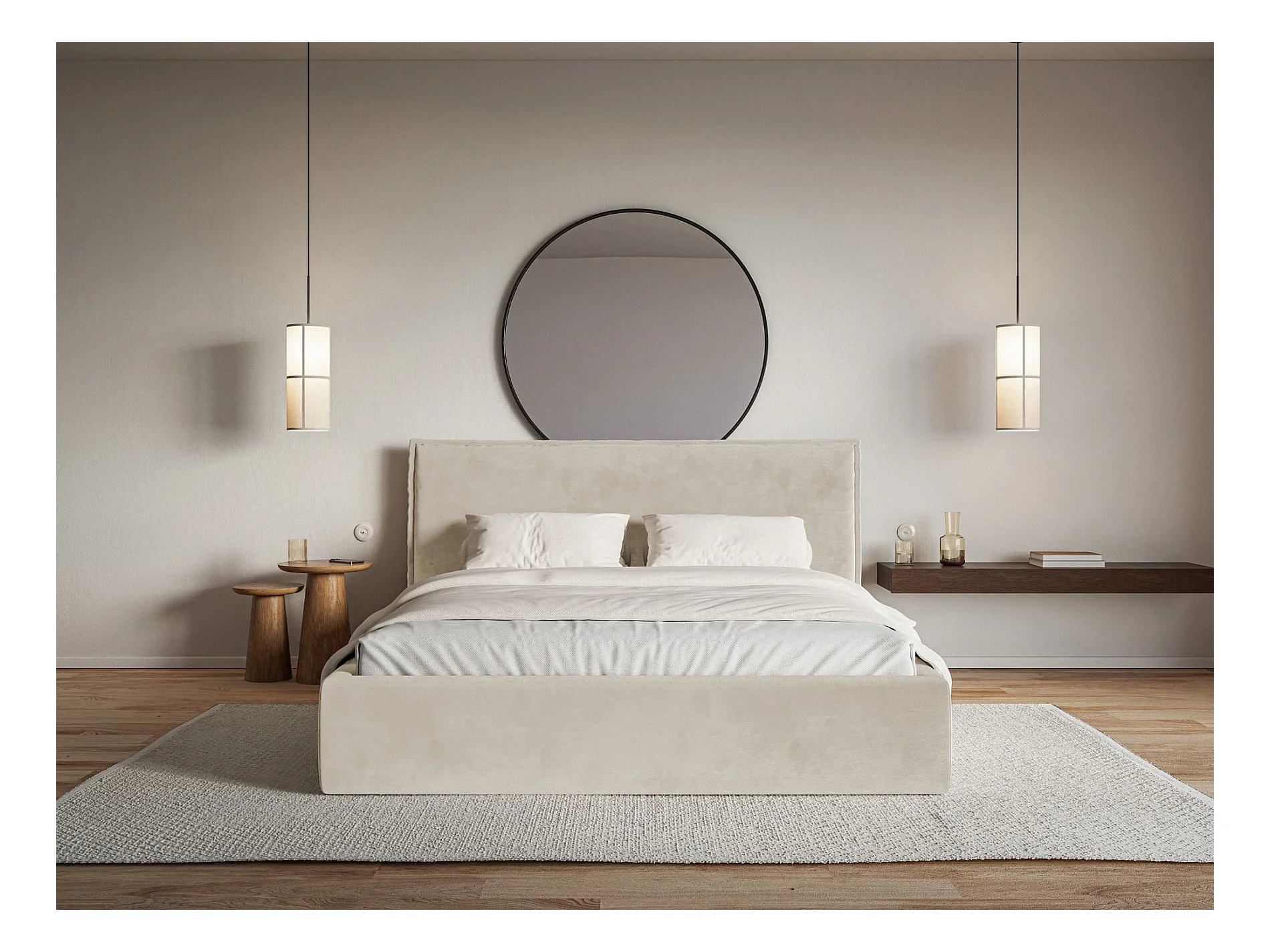 Gestoffeerd bed 160x200 met velours bekleding – Lichtbeige – COMOVES
