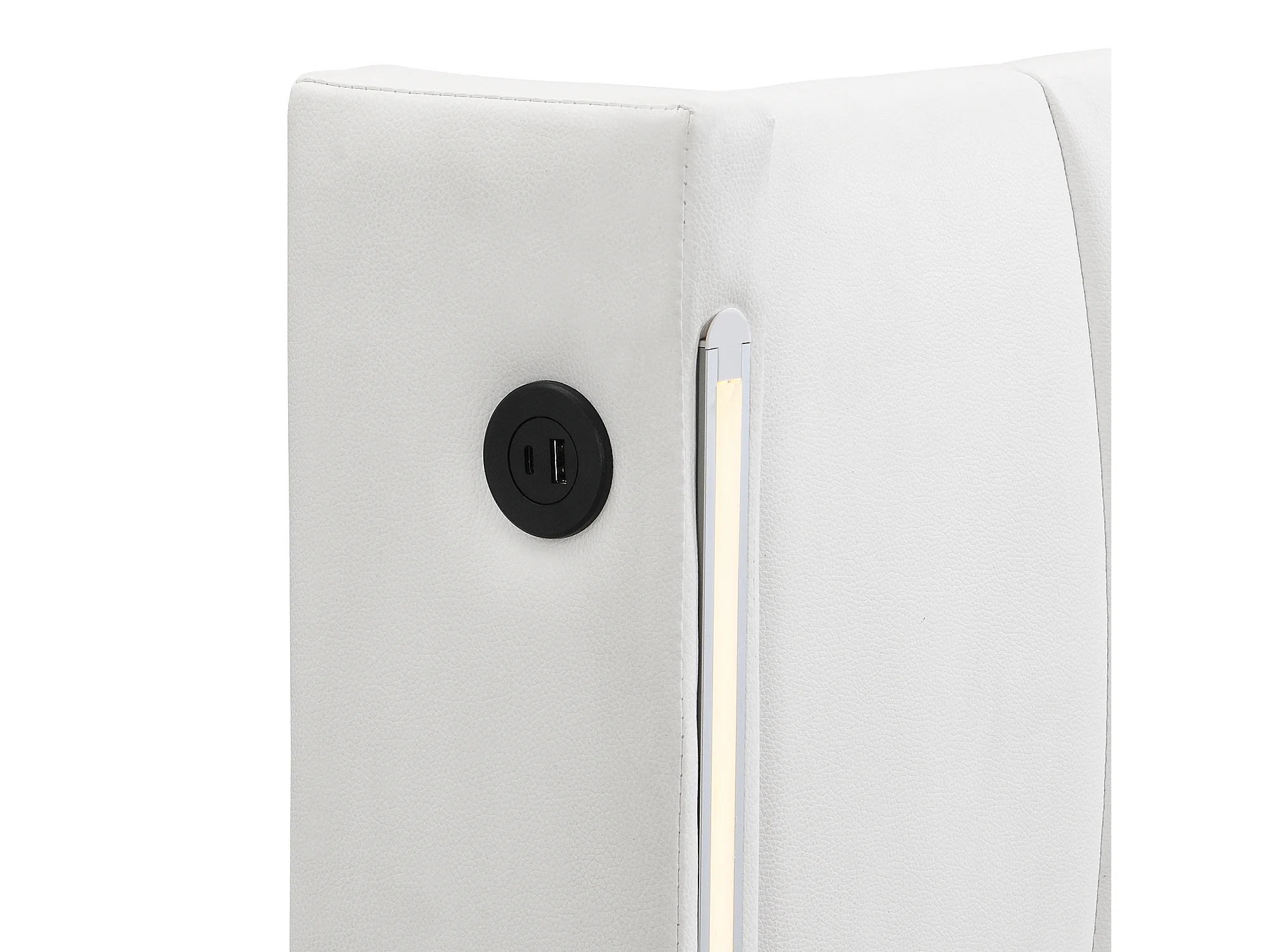 Gestoffeerd Bed 160x200 cm - USB Type-C Oplaadpunt en LED-verlichting - Verstelbaar Hoofdeinde 0–30° - Met Opbergruimte - PU - Wit - Zonder matras