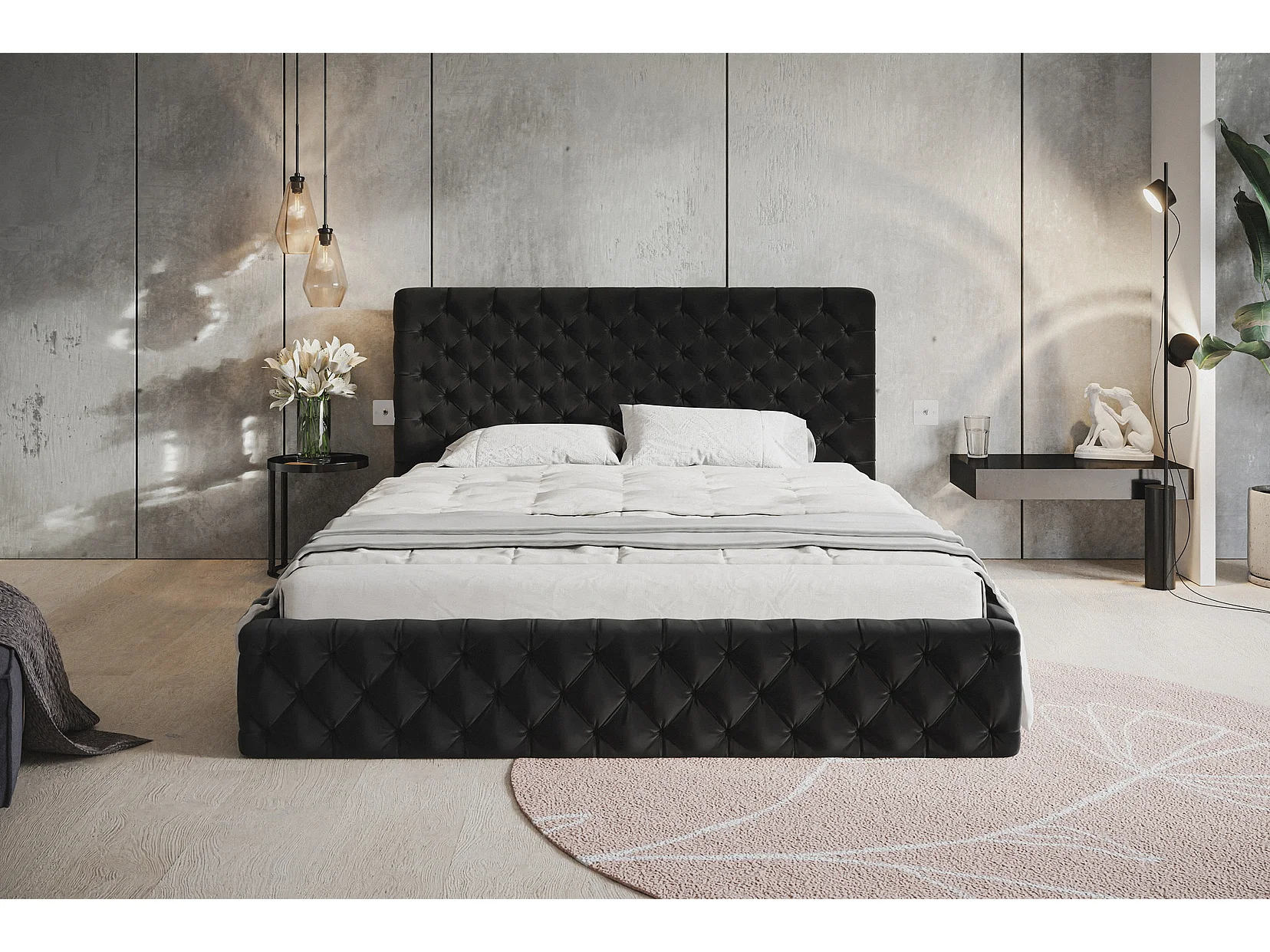 Gestoffeerd bed 160x200 Furis met metalen lattenbodem - Tweepersoonsbed 160x200 cm - fluwelen Zwart (Amor Velvet 4322)