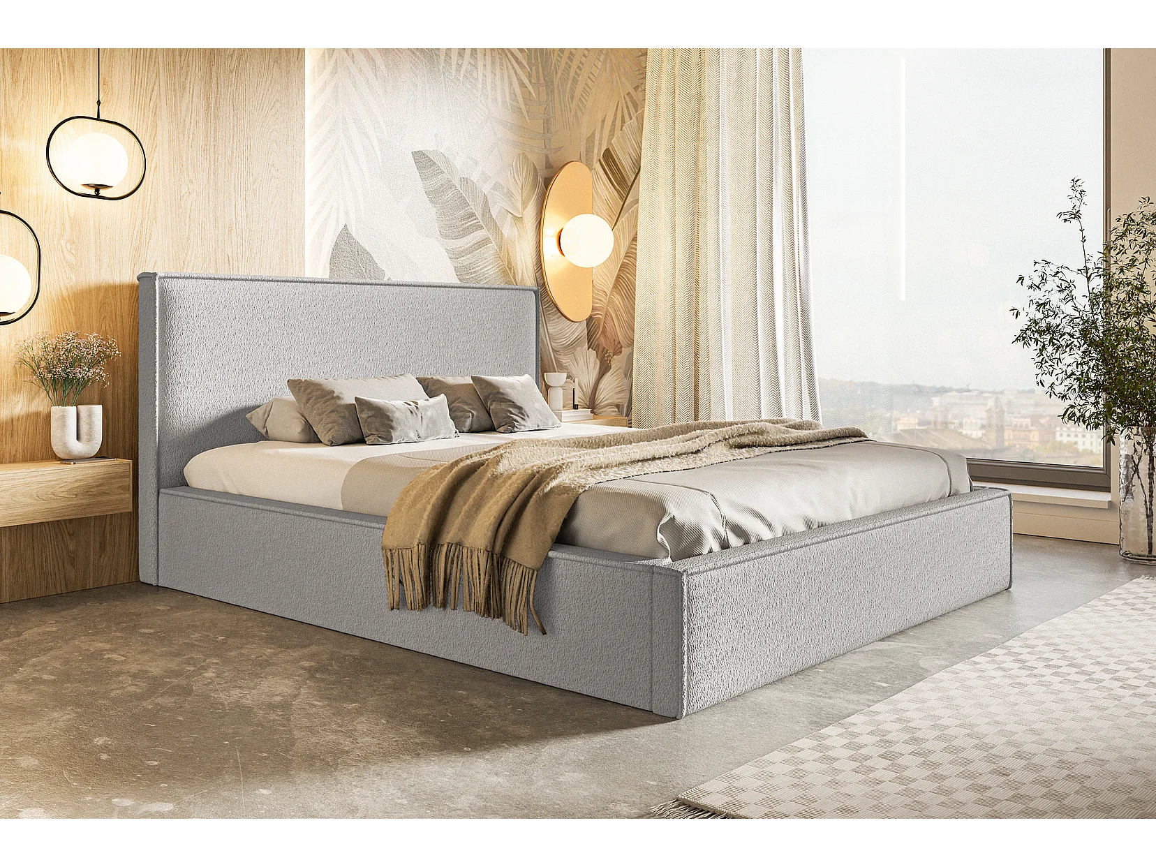 Gestoffeerd bed 160x200 Kyoto - tweepersoonsbed met opbergruimte metalen lattenbodem - Bouclé Lichtgrijs (Anthology 15)