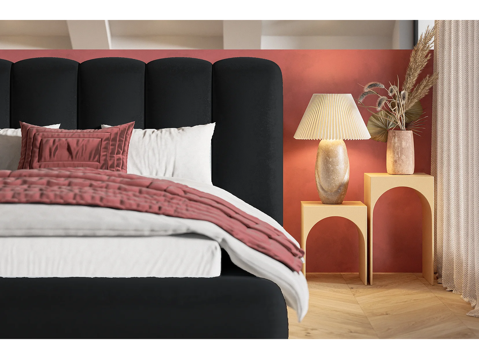 Gestoffeerd bed 160x200 Lumaro met opbergruimte - metalen lattenbodem, Zwart (Amor Velvet 4322)