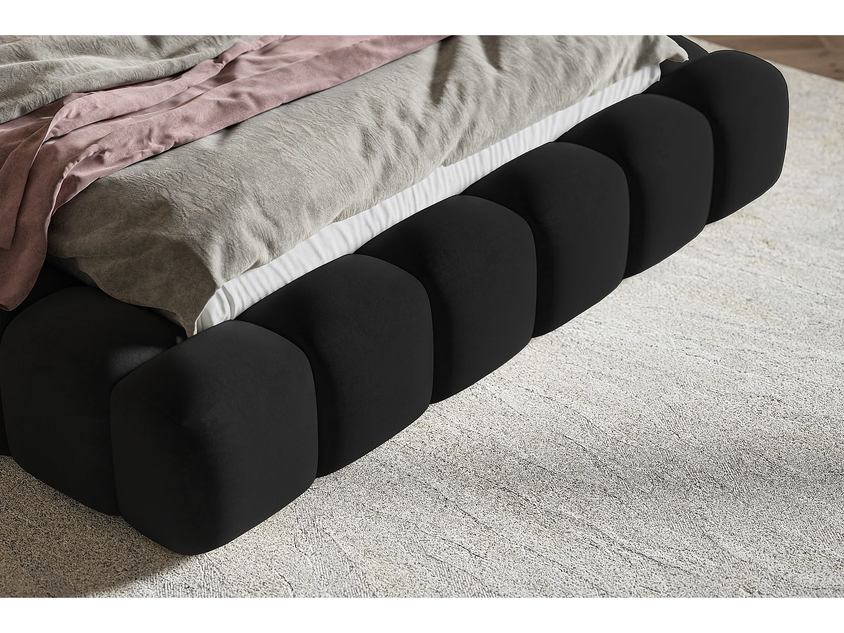 Gestoffeerd bed 160x200 Madeno - lattenbodem, opbergruimte - fluweel, Zwart (Amor Velvet 4322)