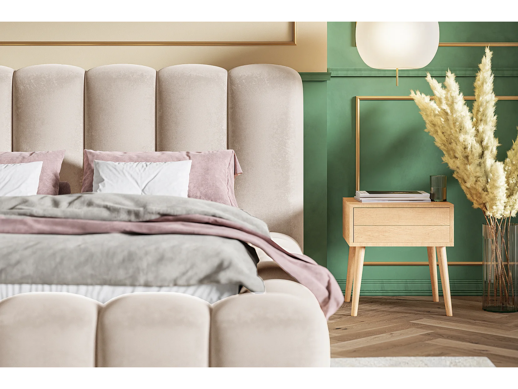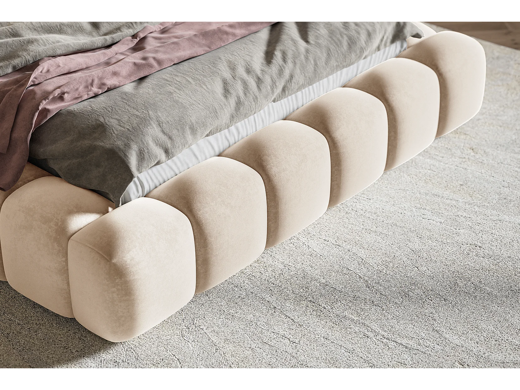 Gestoffeerd bed 160x200 Madeno - metalen lattenbodem, opbergruimte - fluweel, Beige (Amor Velvet 4304)