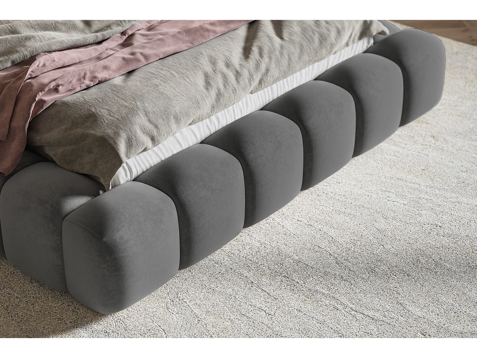 Gestoffeerd bed 160x200 Madeno - metalen lattenbodem, opbergruimte - fluweel, Donkergrijs (Amor Velvet 4321)