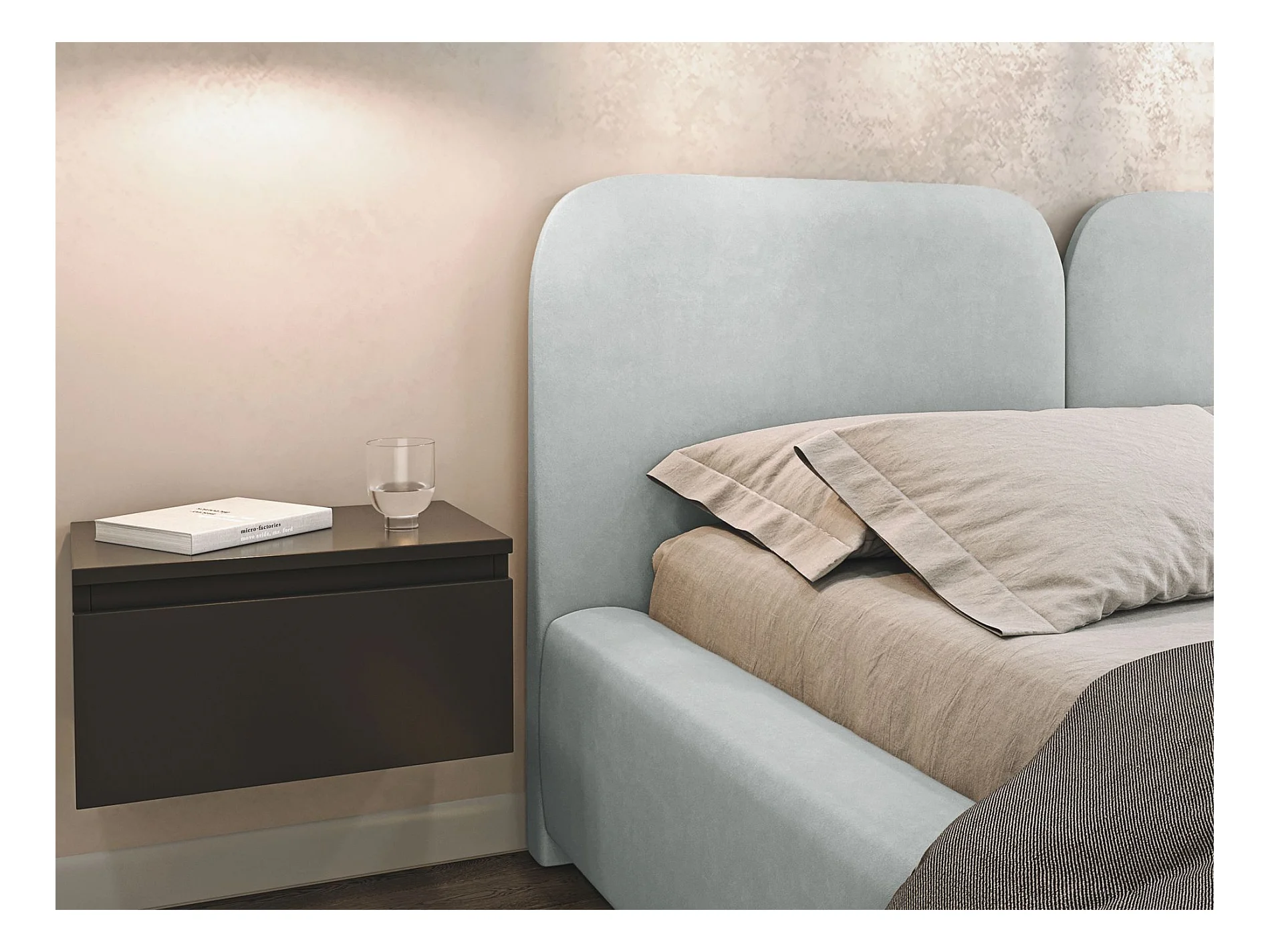 Gestoffeerd bed 160x200 met velours bekleding – LED – Lichtgrijs – COMOVES