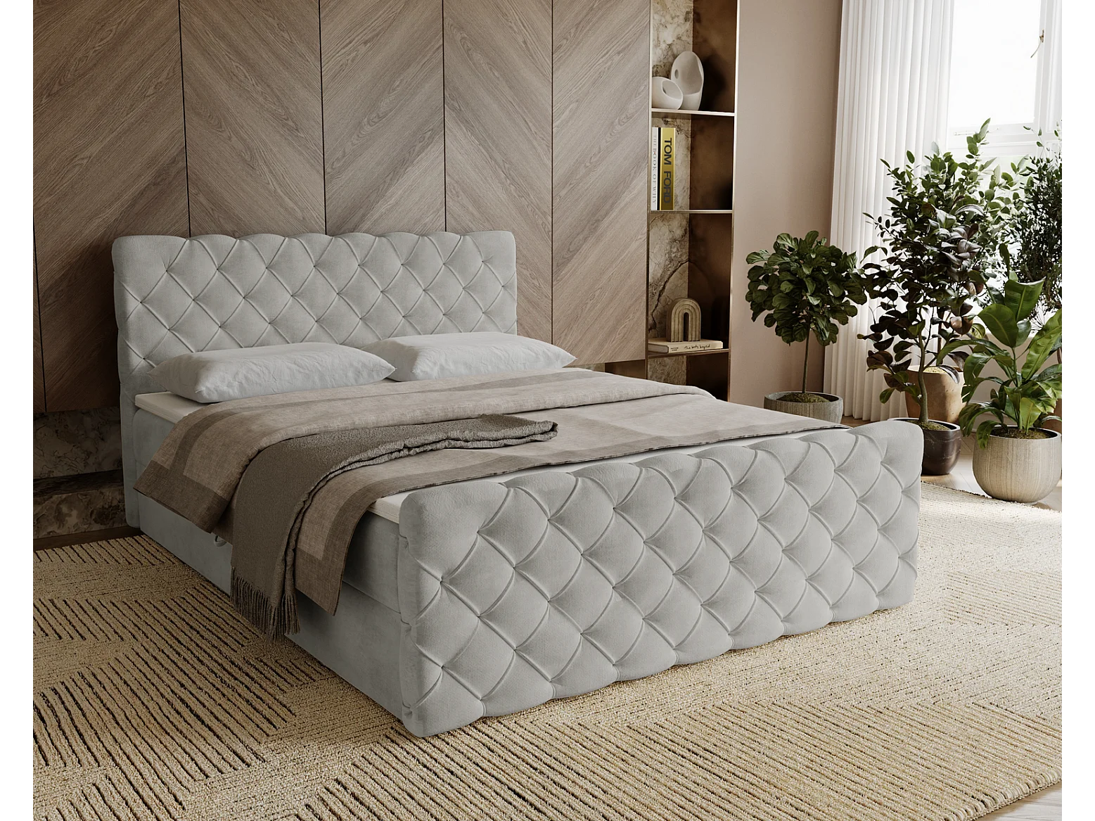 Gestoffeerd bed 160x200 Portofino - bed met opbergruimte, geïntegreerde veringmatras - Tweepersoonsbed lichtgrijs (Elegance 13)
