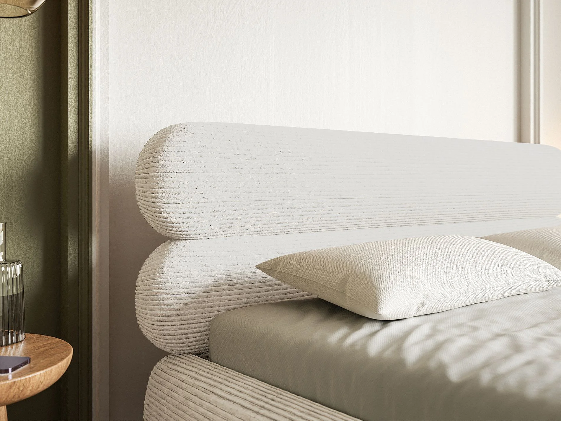 Gestoffeerd bed 180×200 – ribfluweel en zwarte poten – crème – ROULE CORD