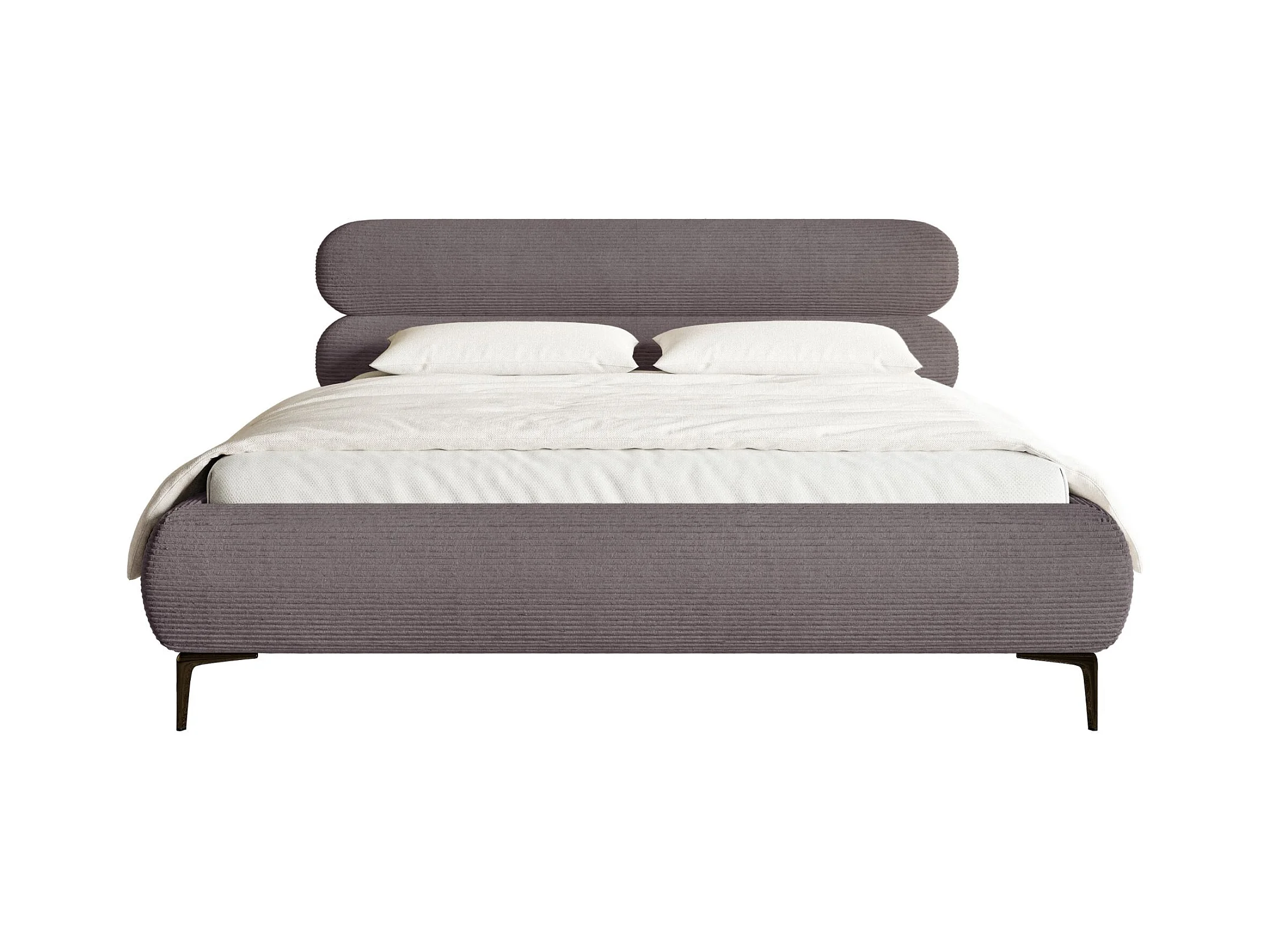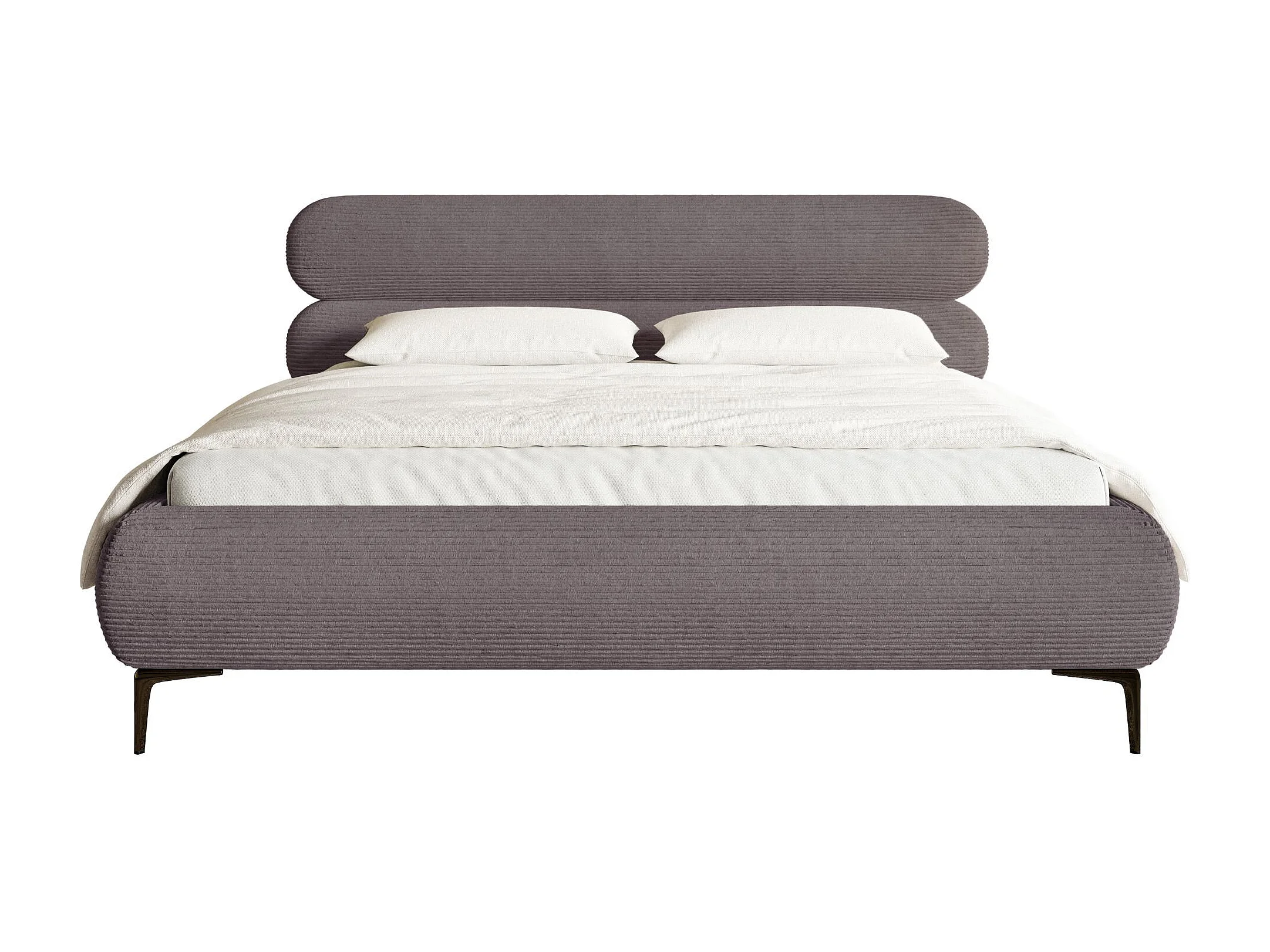 Gestoffeerd bed 160×200 – ribfluweel en zwarte poten – bruin – ROULE CORD