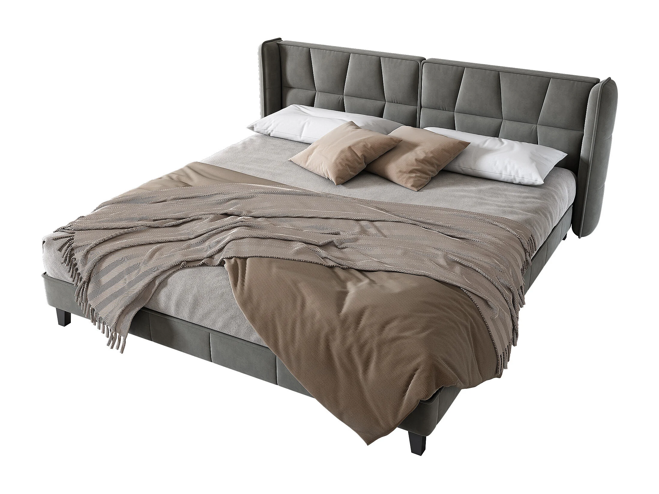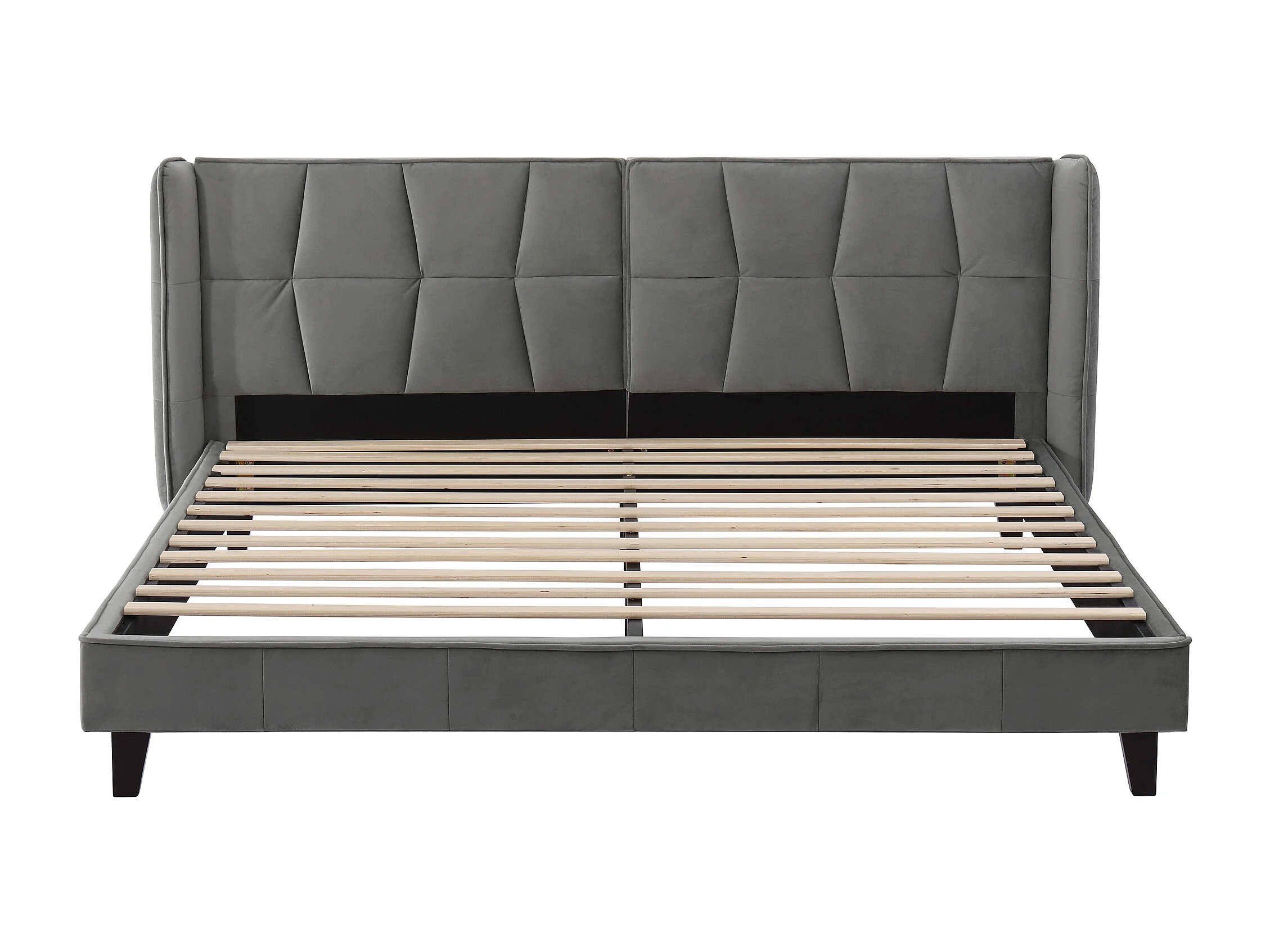 Tweepersoonsbed bekleed met fluweel - 160x200cm - met lattenbodem - Grijs