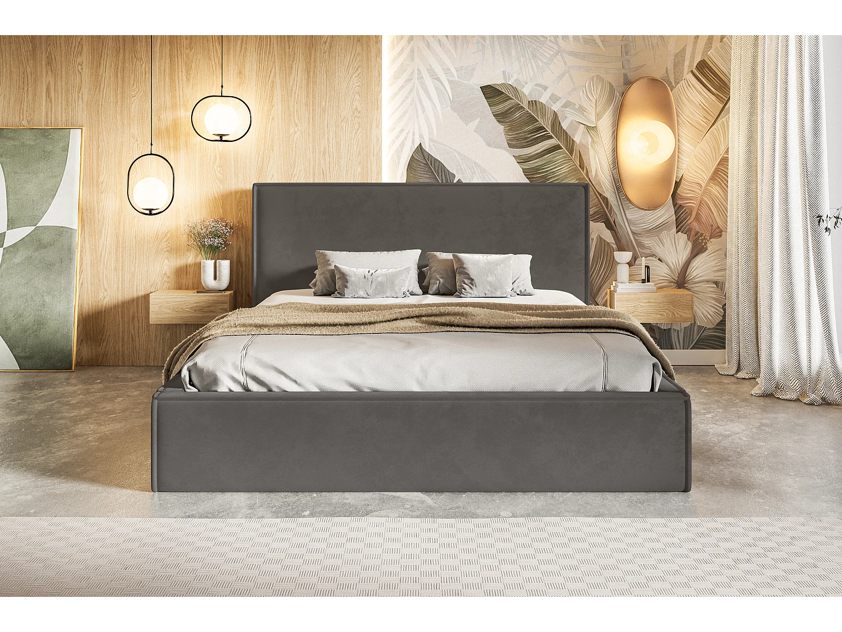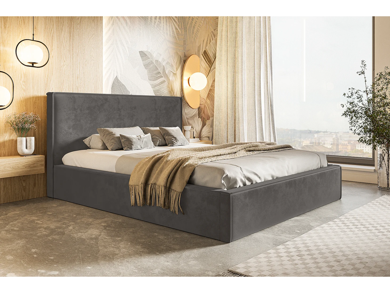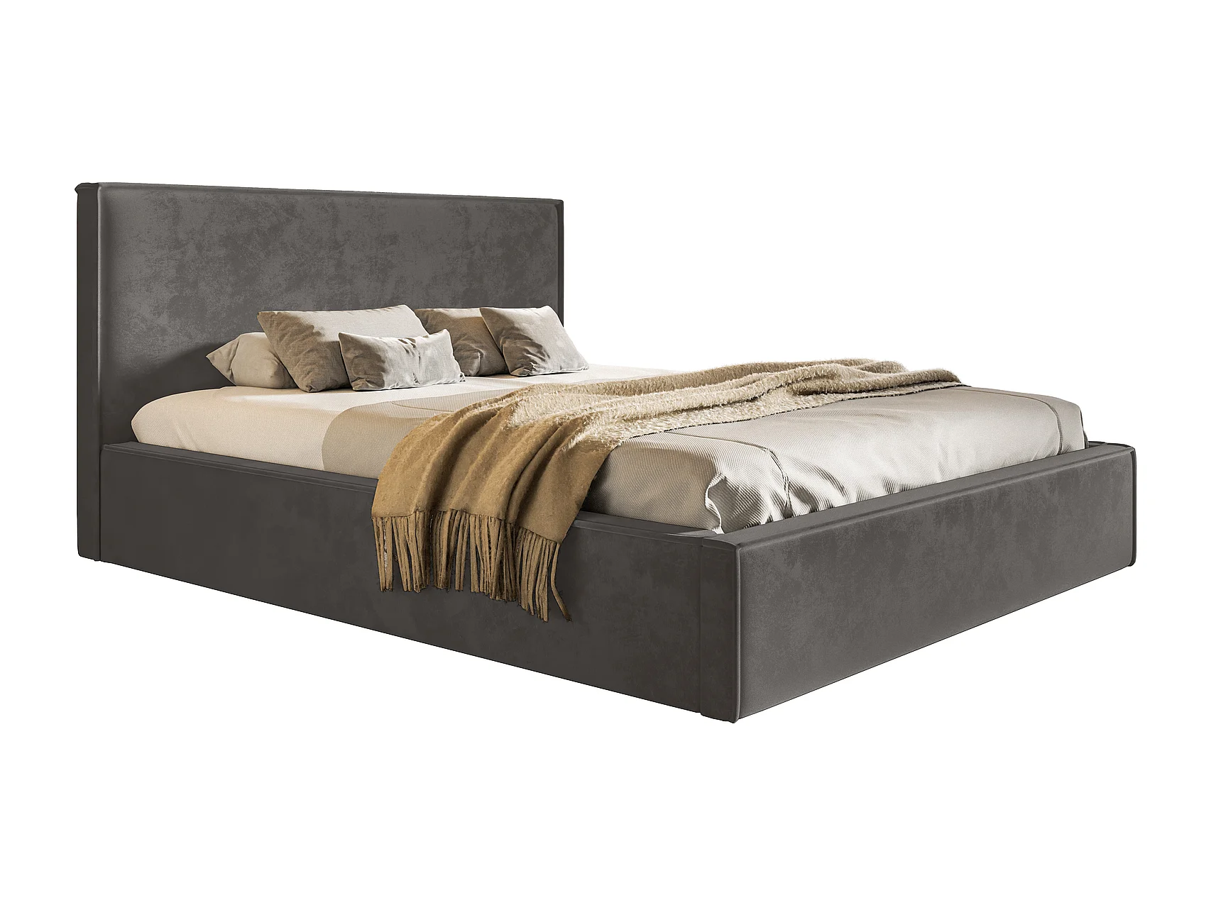 Gestoffeerd bed 180x200 Kyoto - tweepersoonsbed met opbergruimte - metalen lattenbodem, fluwelen Donkergrijs (Amor Velvet 4321)