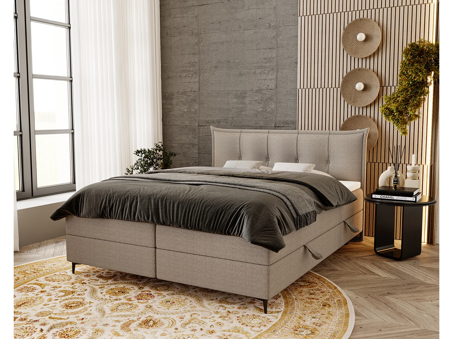 Gestoffeerd bed 180x200 Liron - Tweepersoonsbed met matras, met topper, opbergruimte, Lichtgrijs (Anthology 15)