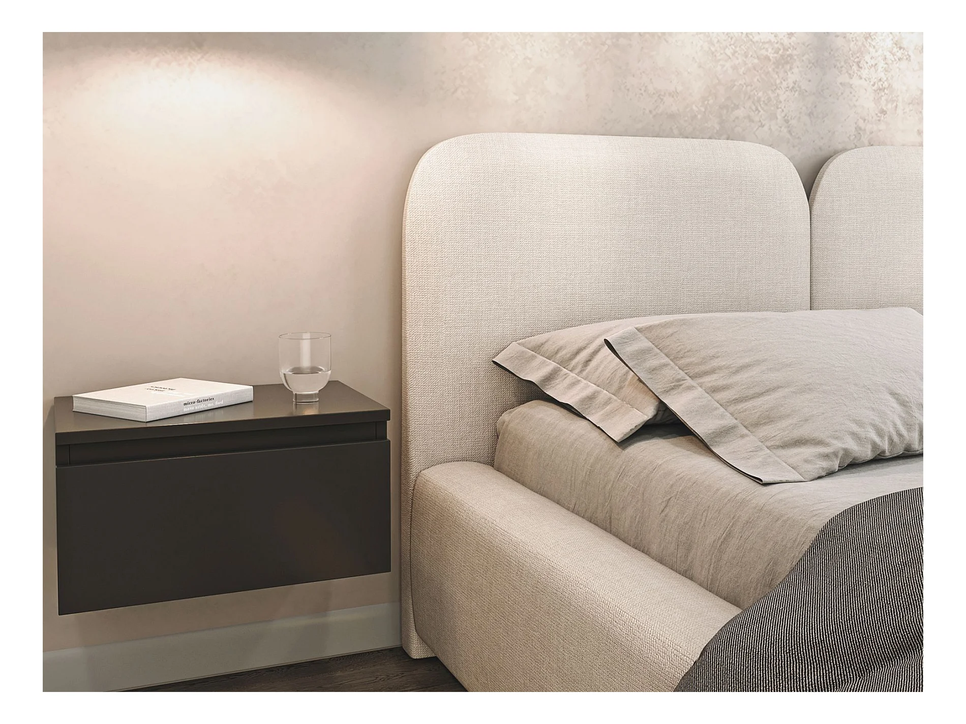 Gestoffeerd bed 180x200 met velours bekleding – LED – Lichtbeige – COMOVES