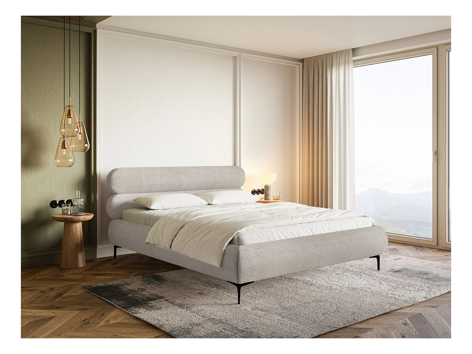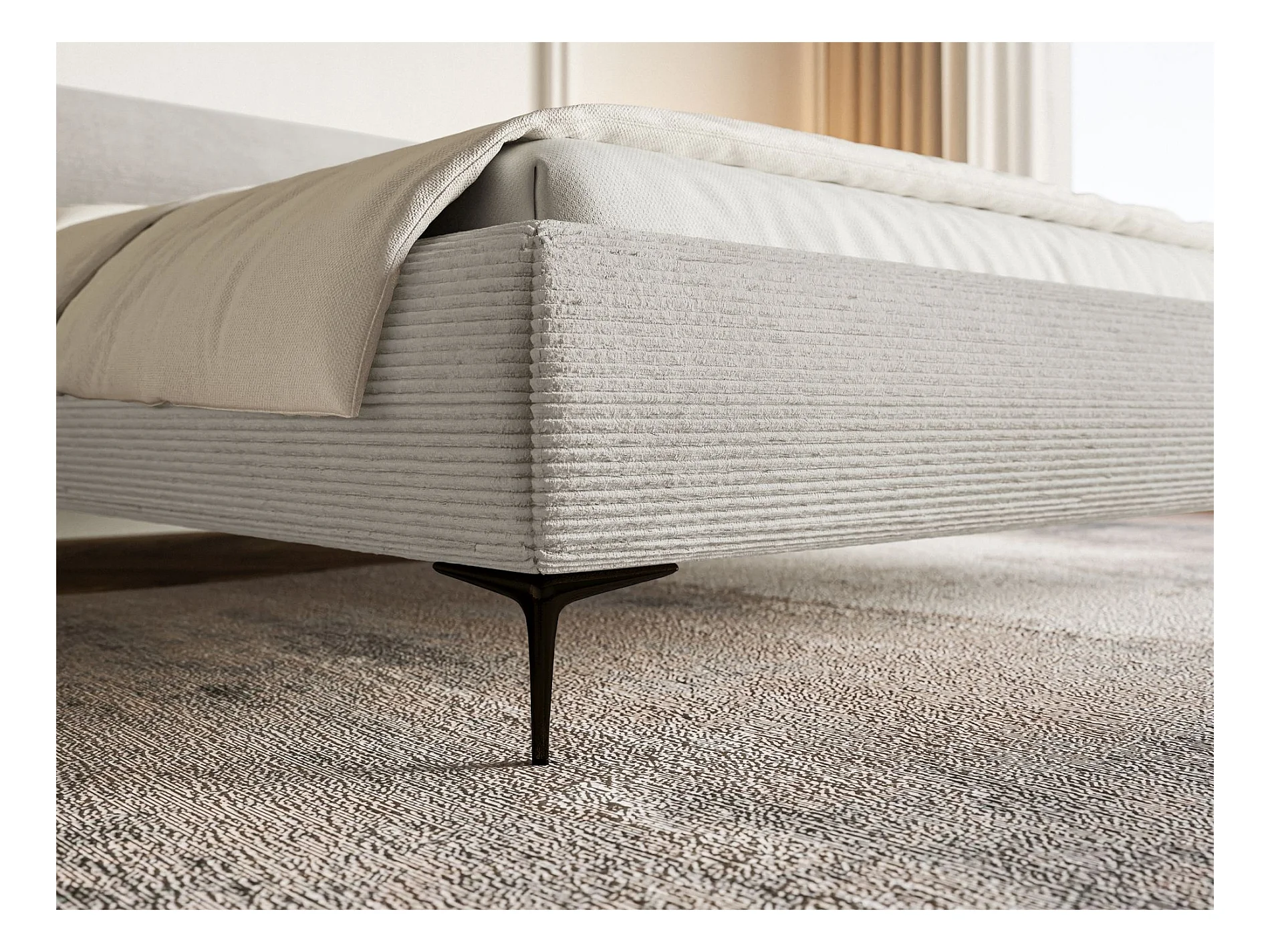 Gestoffeerd bed 180×200 – ribfluweel en zwarte poten – greige – ROULE CORD