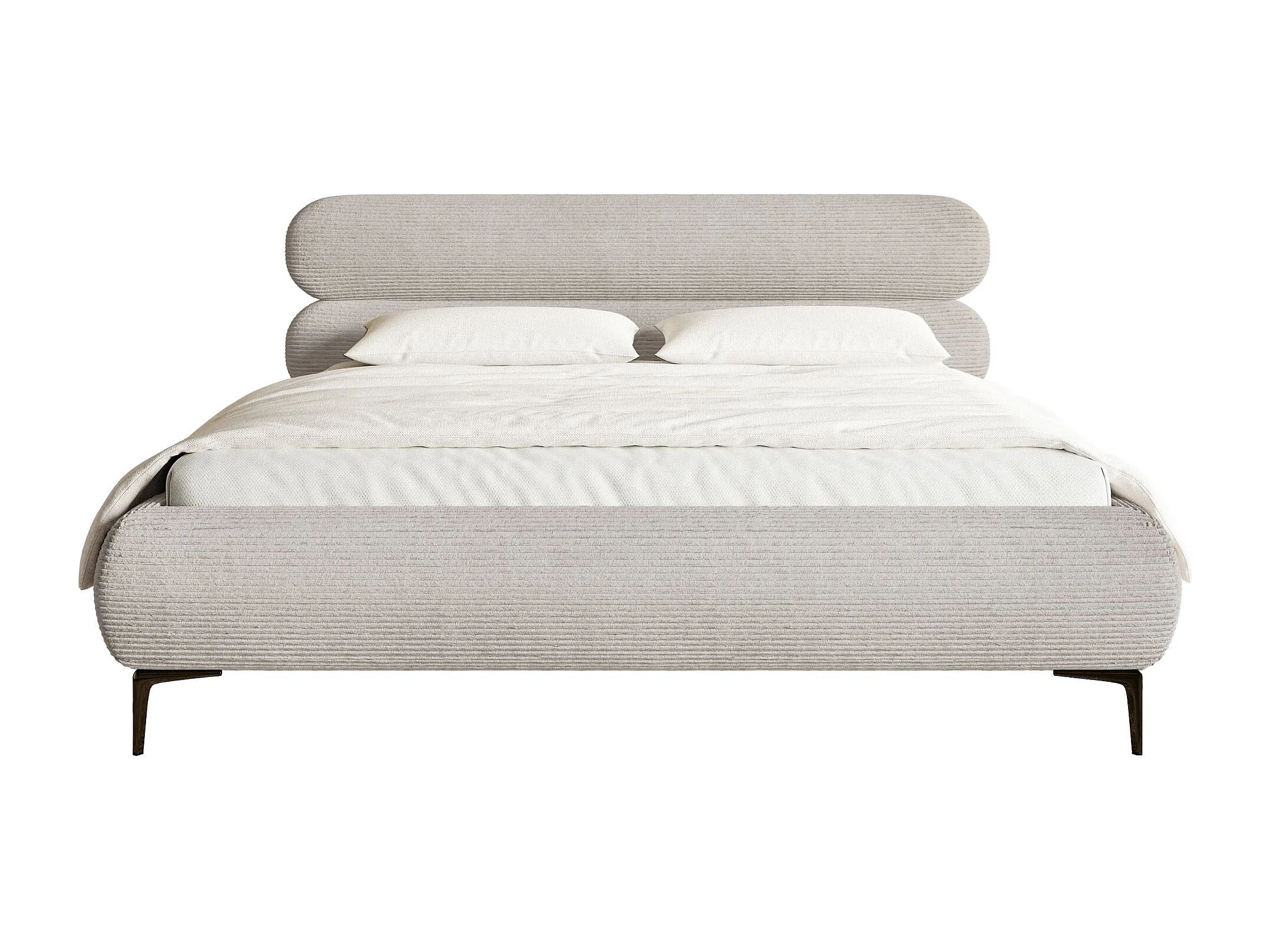 Gestoffeerd bed 180×200 – ribfluweel en goudkleurige poten – greige – ROULE CORD
