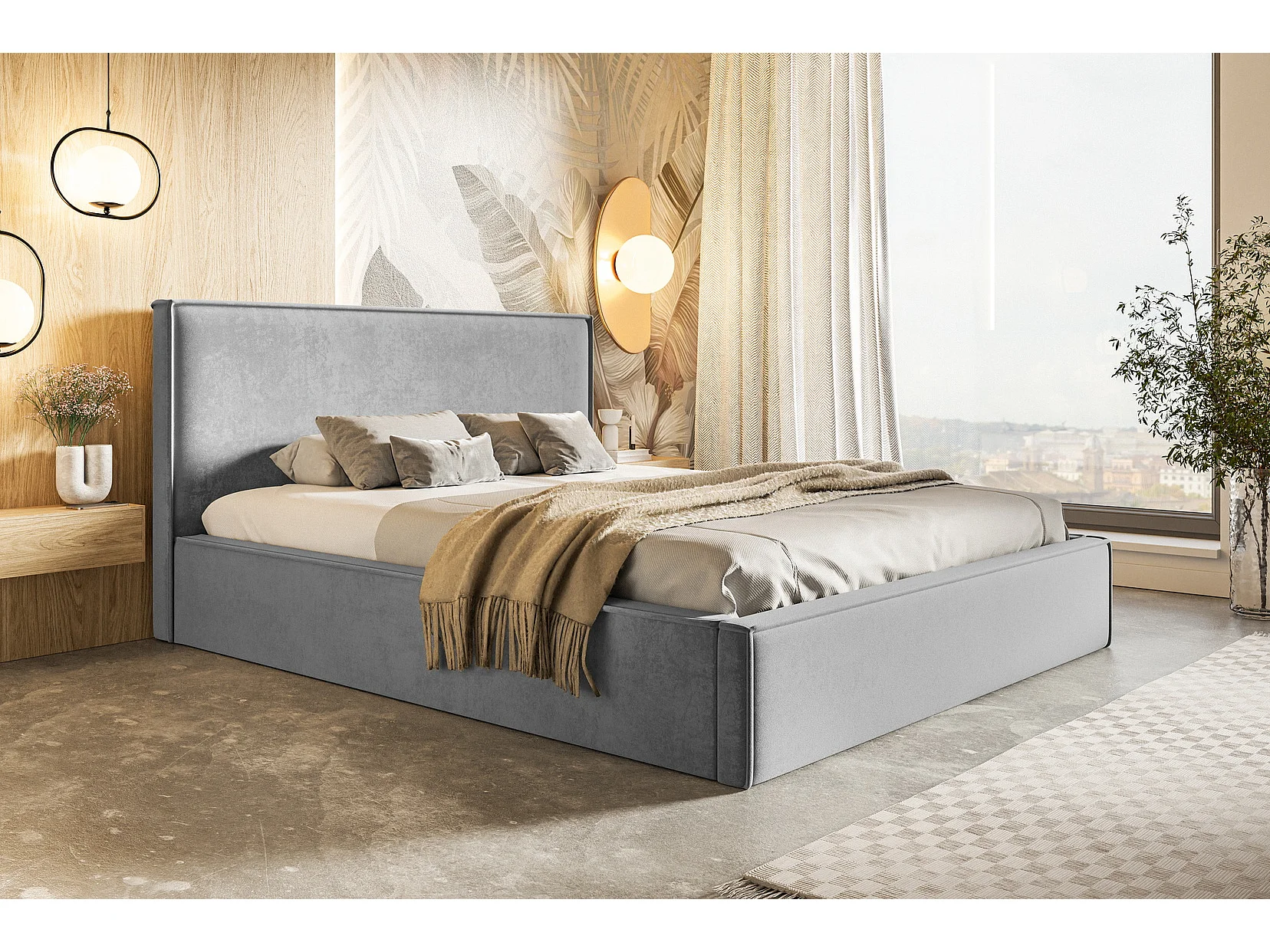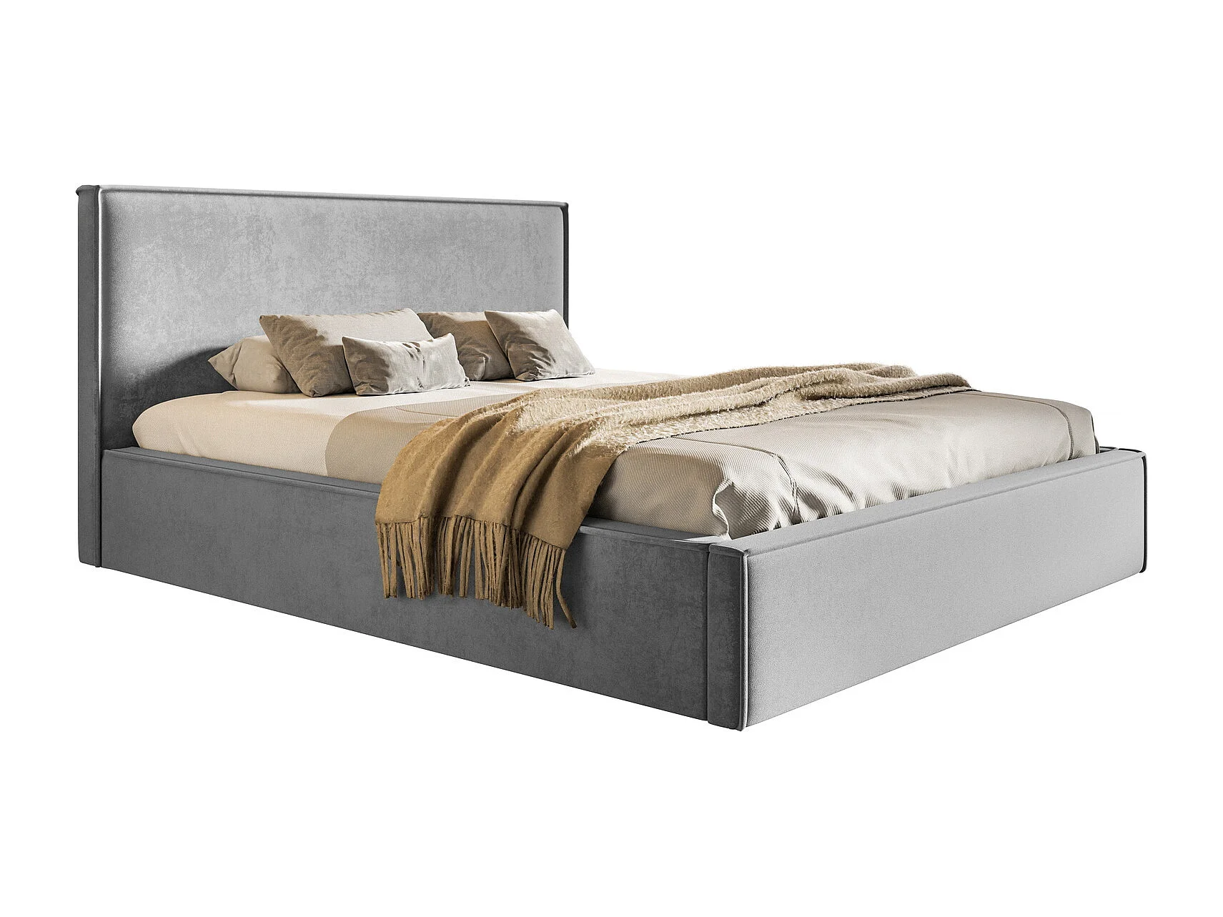 Gestoffeerd bed 200x200 Kyoto - tweepersoonsbed met opbergruimte - metalen lattenbodem, fluwelen Grijs (Amor Velvet 4318)