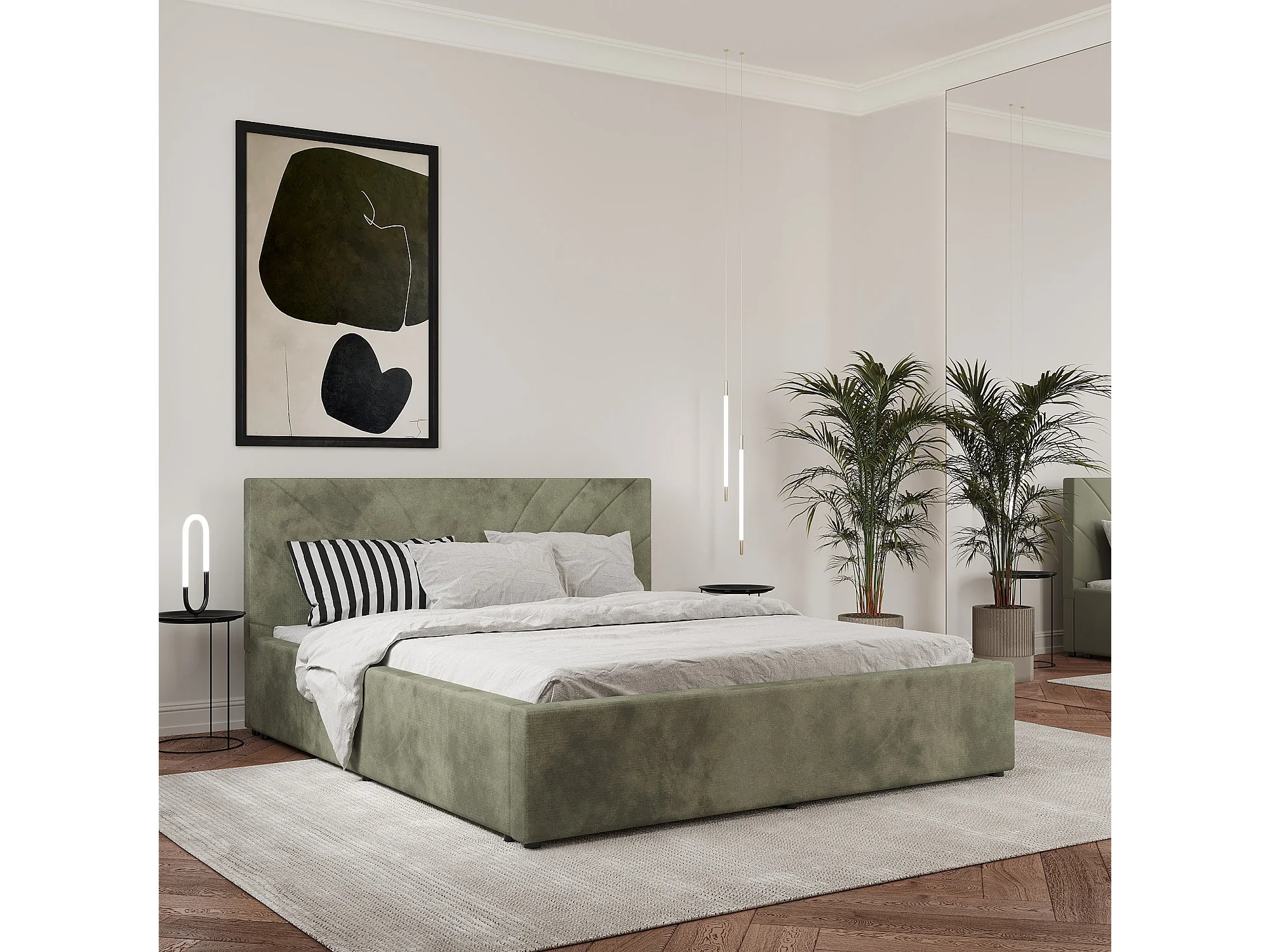 Gestoffeerd bed Fargo, 200 x 140 cm, Khaki