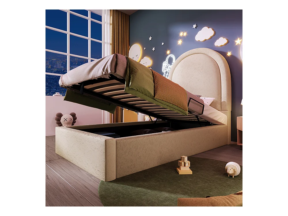 Gestoffeerd bed kinderbed 90 x 190 cm, eenpersoonsbed met kosmisch patroon, beige,PU