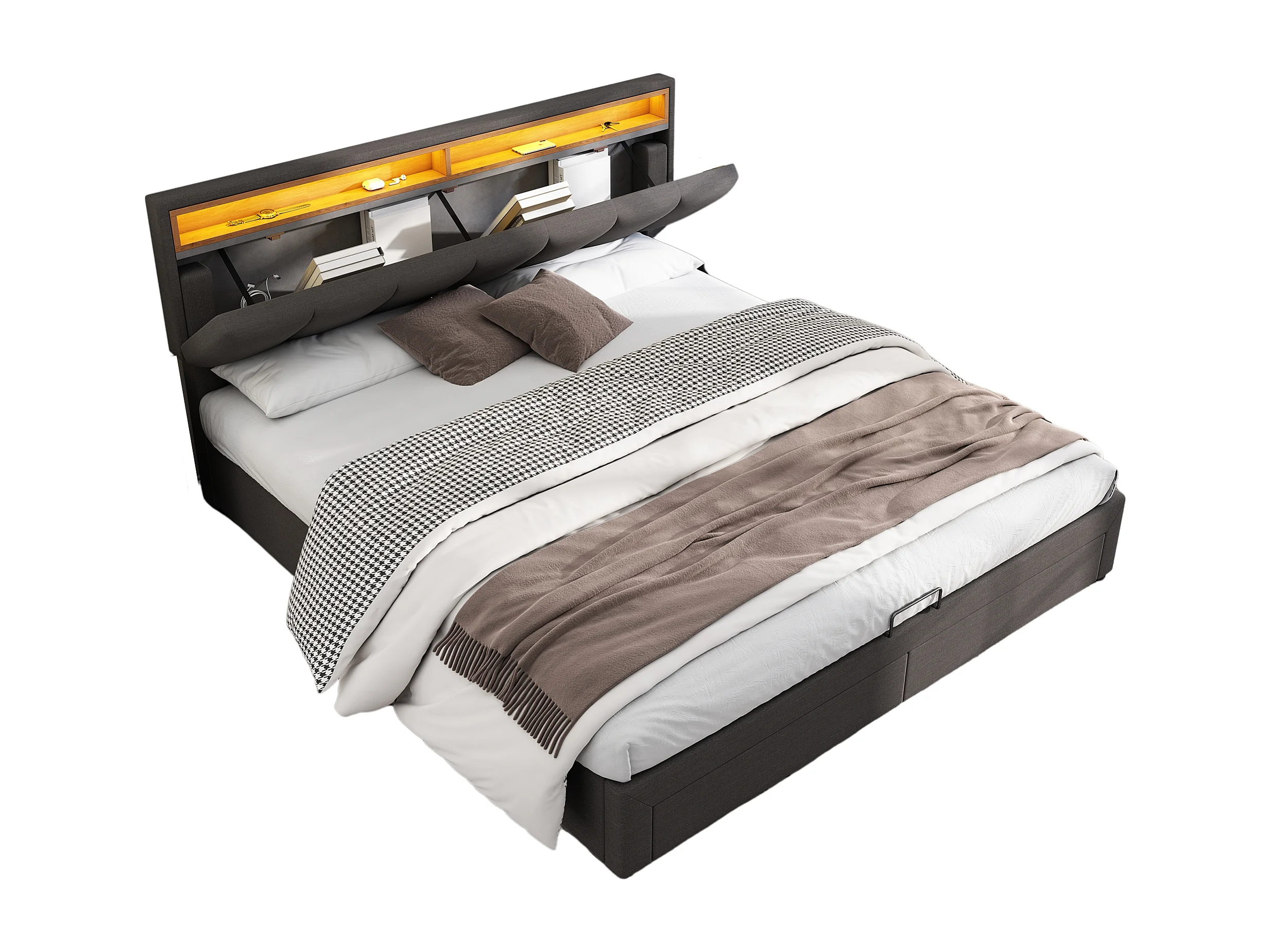 Gestoffeerd bed met LED-verlichting, hydraulisch opbergbed 180×200 cm, grijs, met schuim hoofdeinde