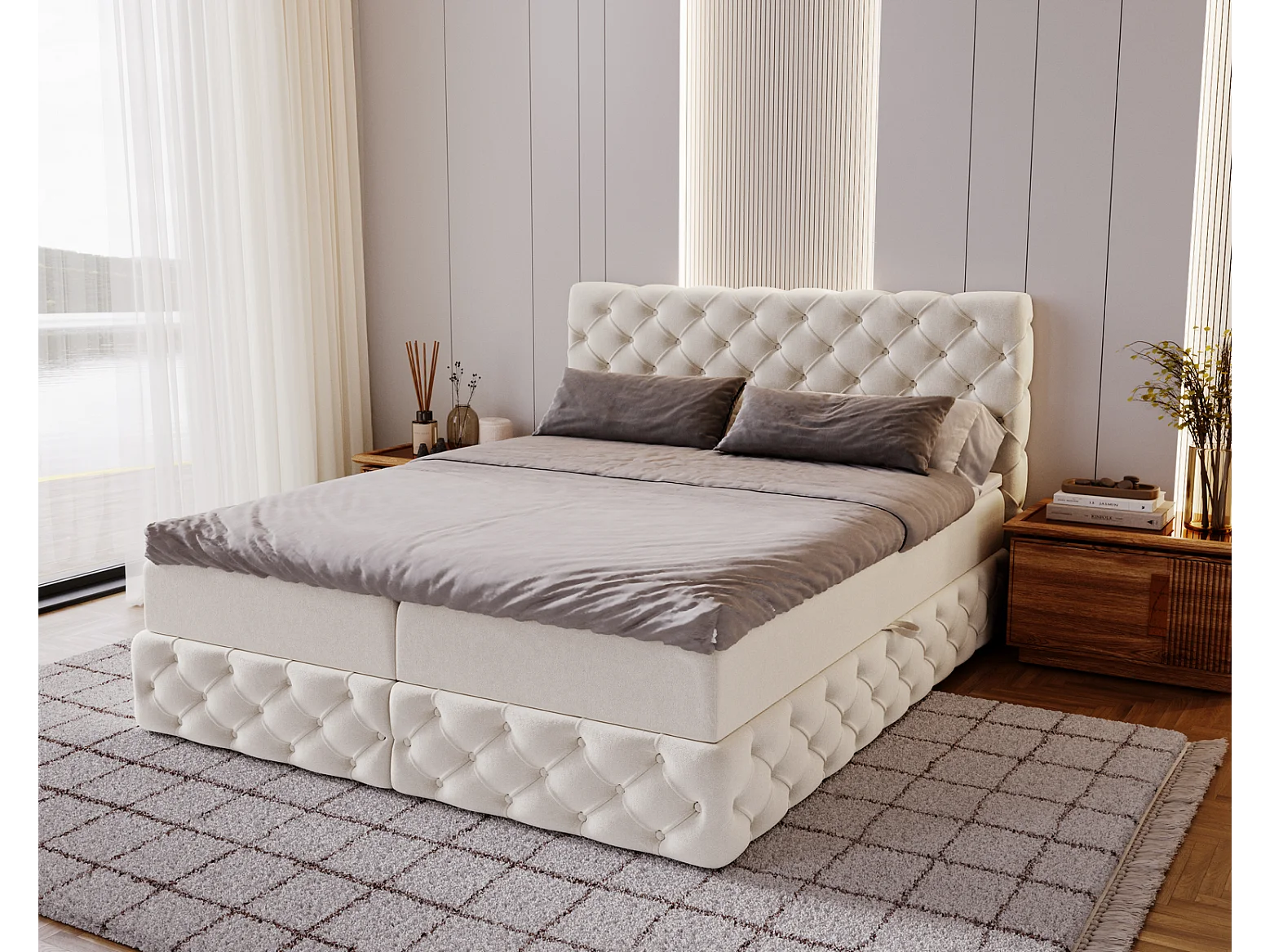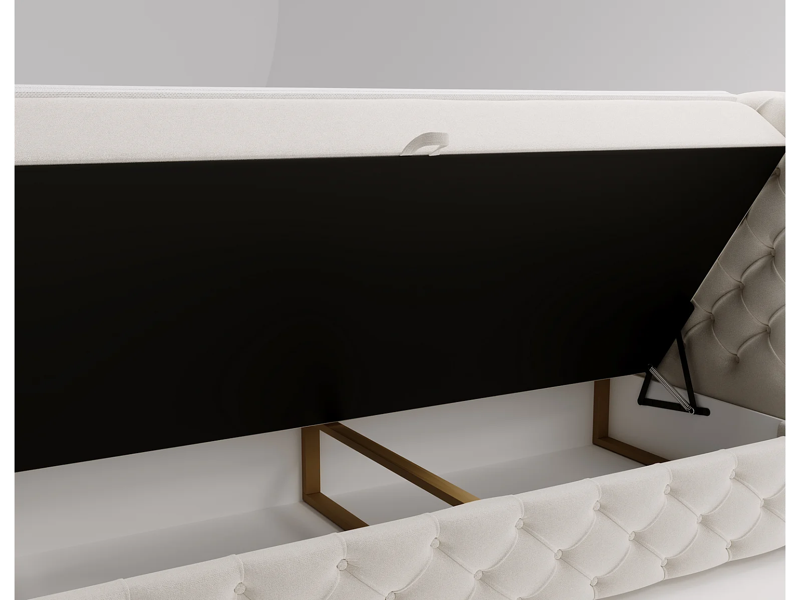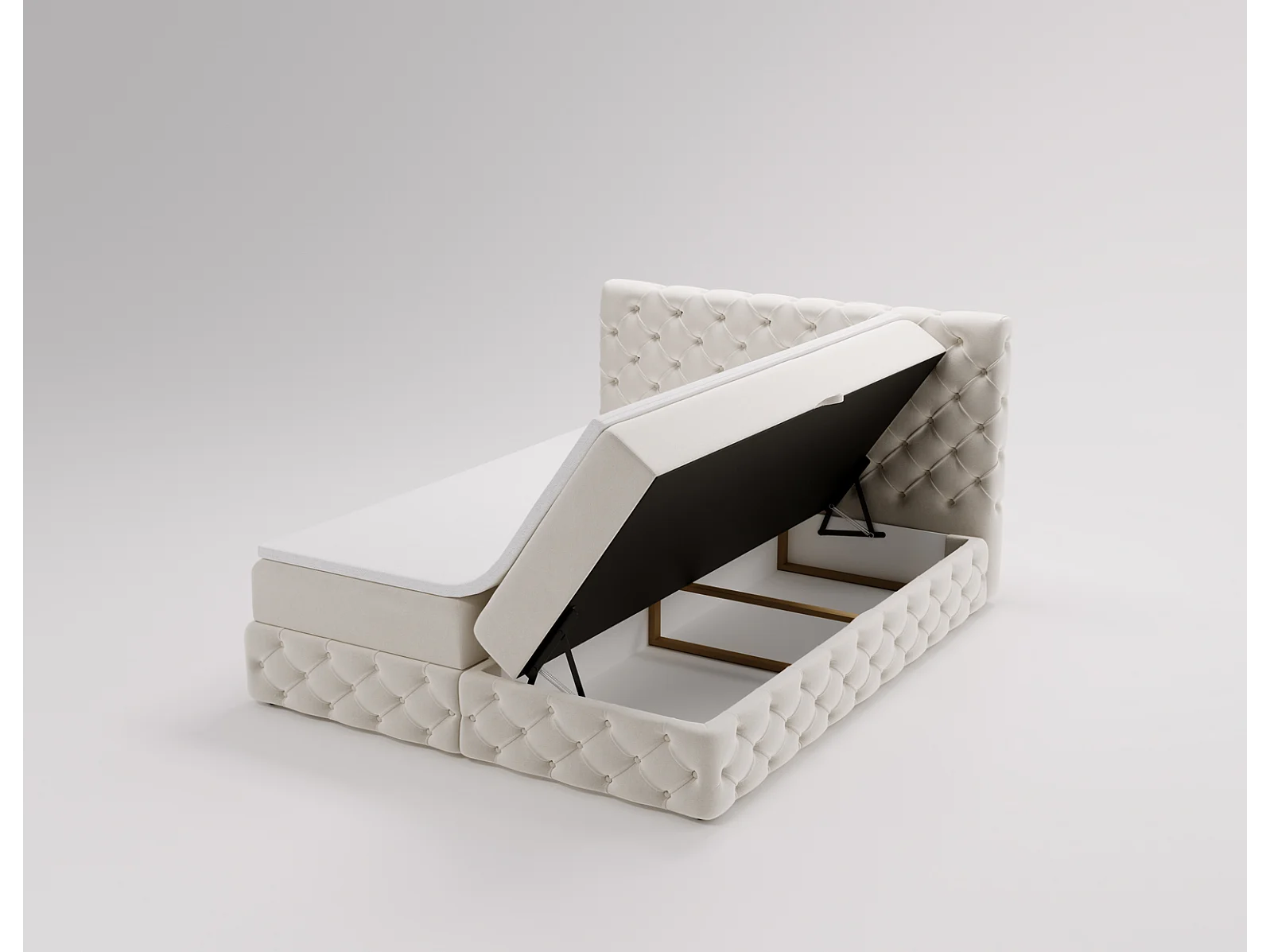Gestoffeerd bed met matras 140x200 Royal - bed 140x200 met opbergruimte, topper, crème (Royal Velvet 1)