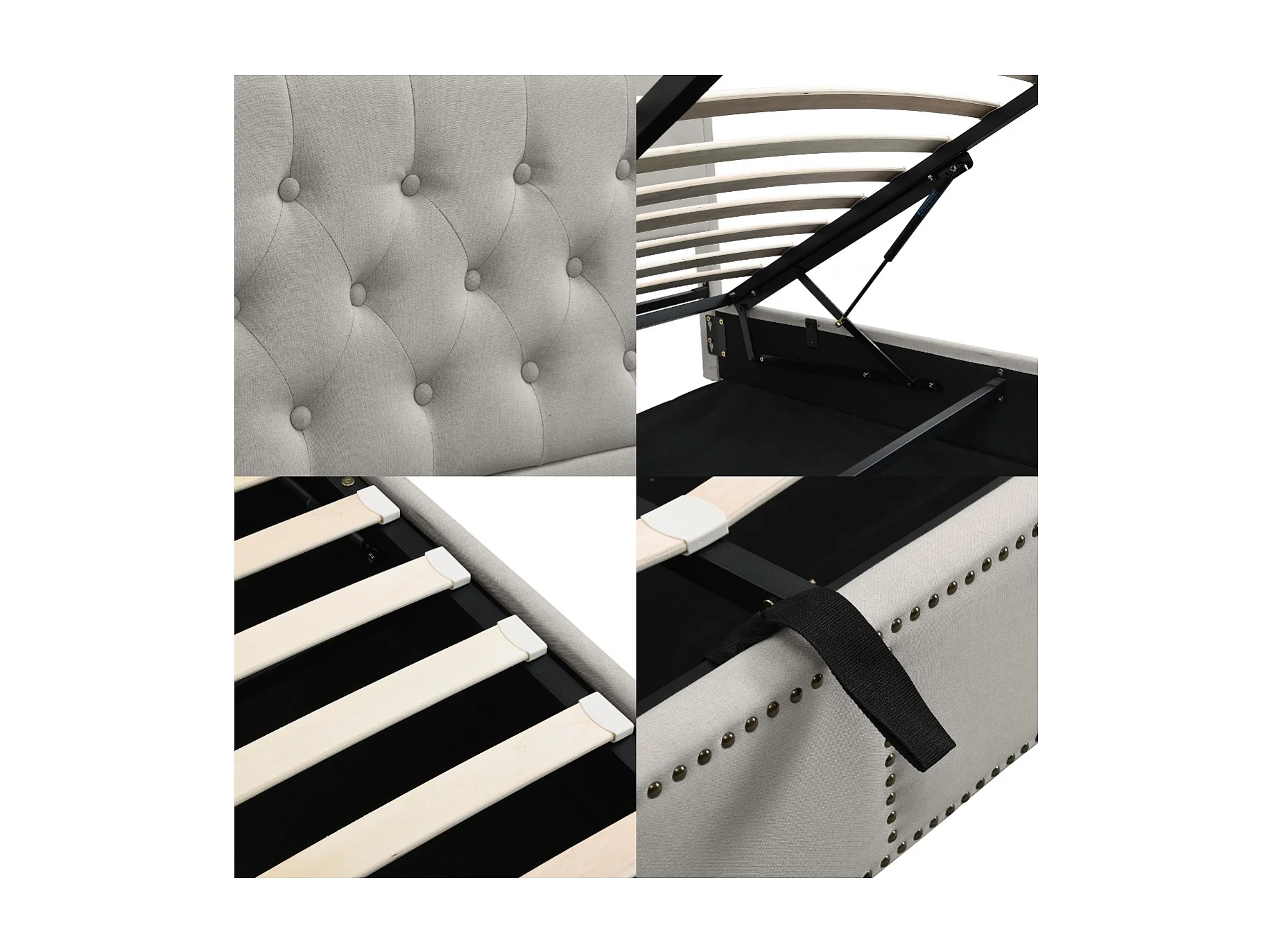 Gestoffeerd linnenopbergbed - versierd met klinknagels - met lattenbodem - 140x190cm - Lichtgrijs