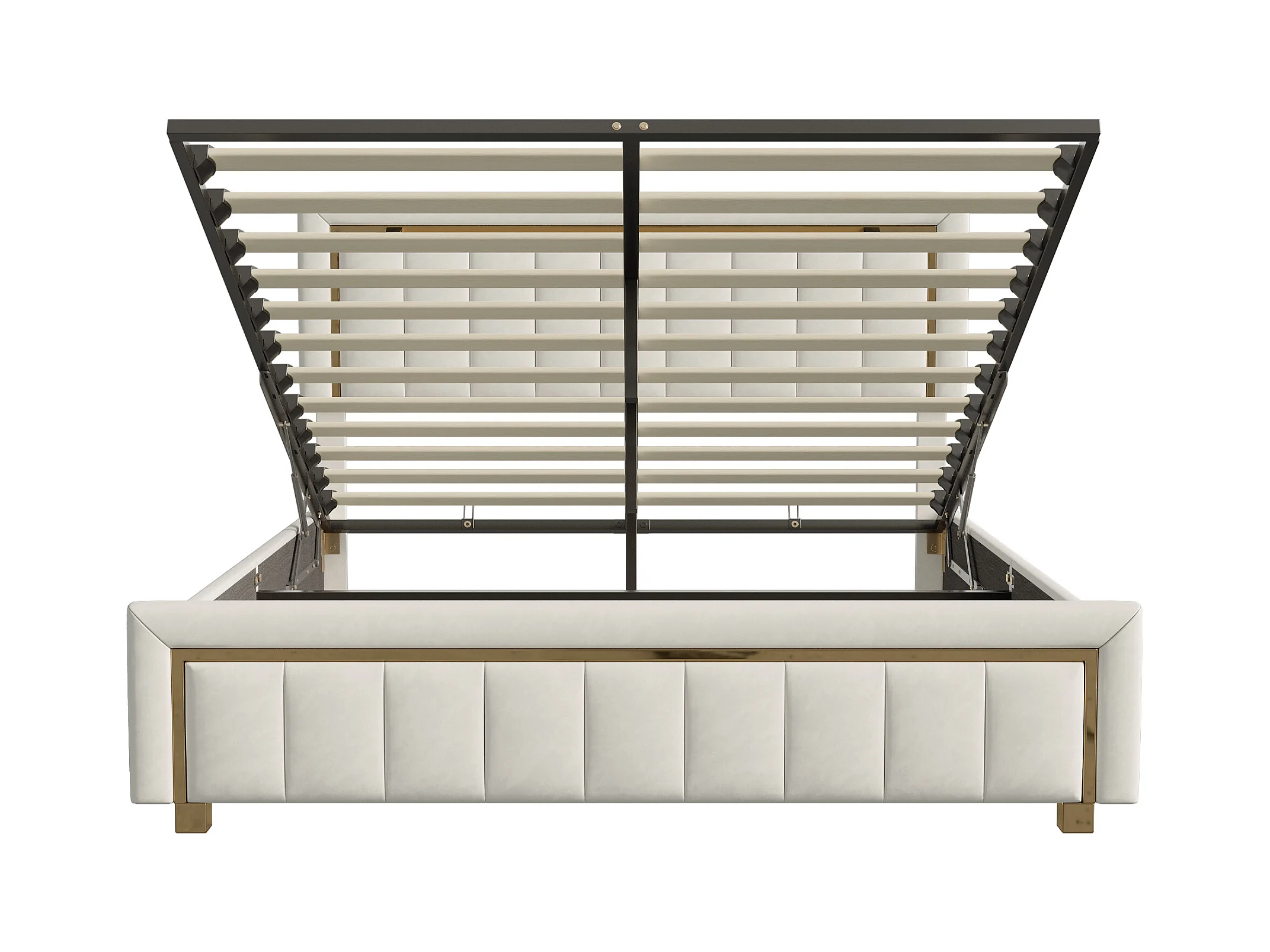 Prince prestige opbergbed – Elegantie van gewatteerd fluweel-Kleur Licht beige-Slapen 160x200cm