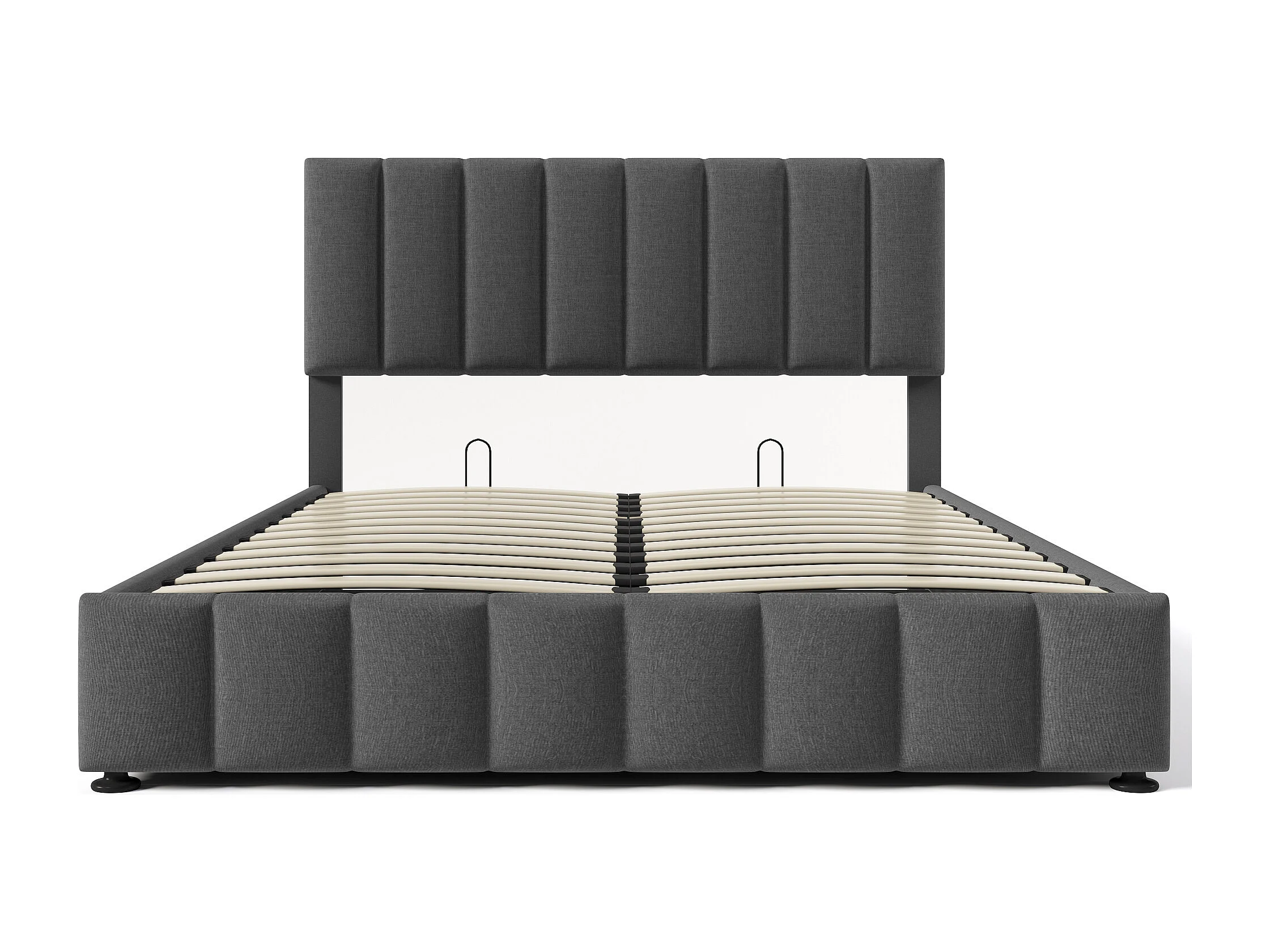 Gestoffeerd tweepersoonsbed met opbergruimte - 140 x 200 cm - met verstelbaar hoofdeinde + metalen lattenbodem - linnen - grijs