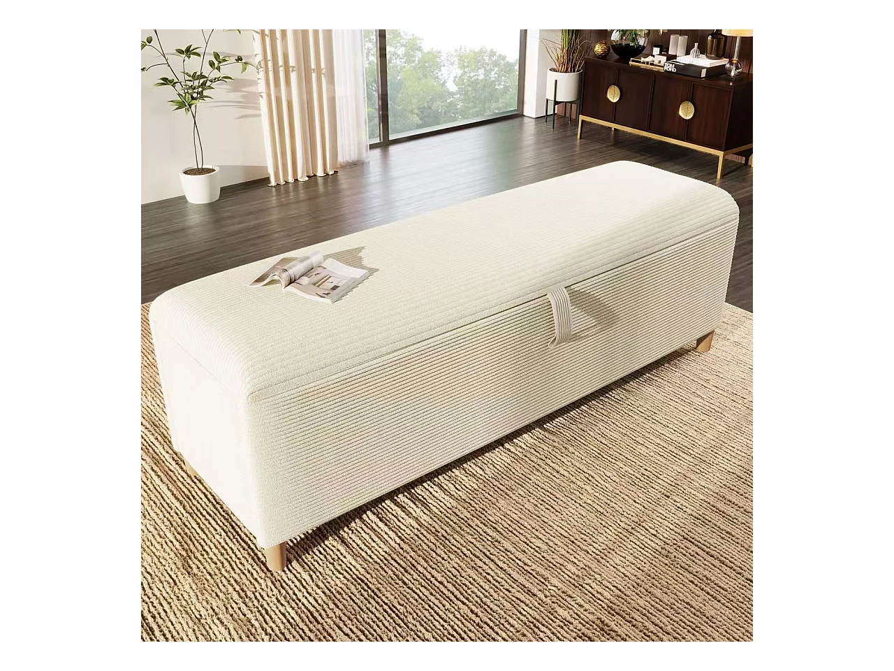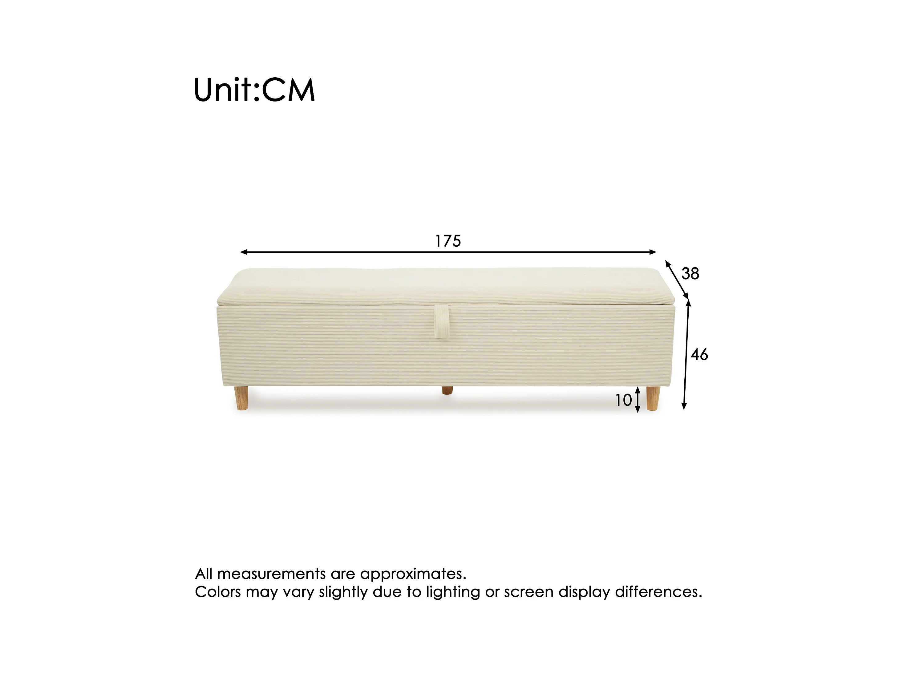 Gestoffeerde opbergbank 175x38x46cm - Corduroy - Beige