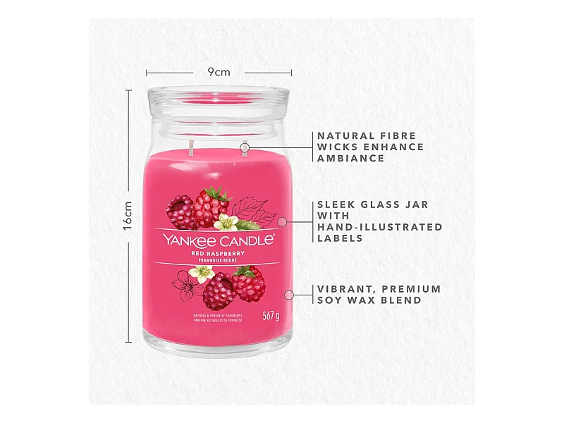 Geurkaars in grote pot, Red Raspberry, roze 567 gr, Signature
