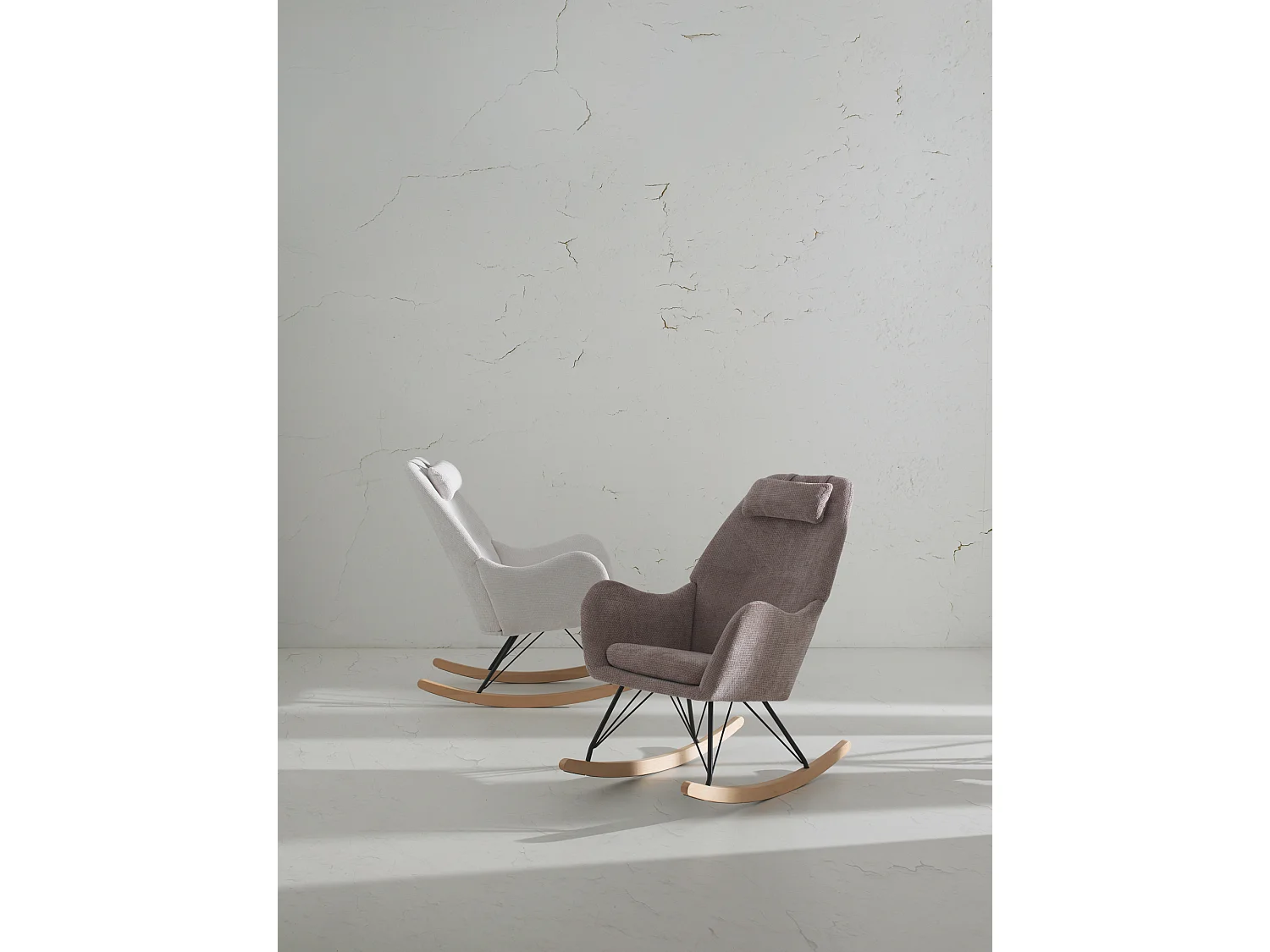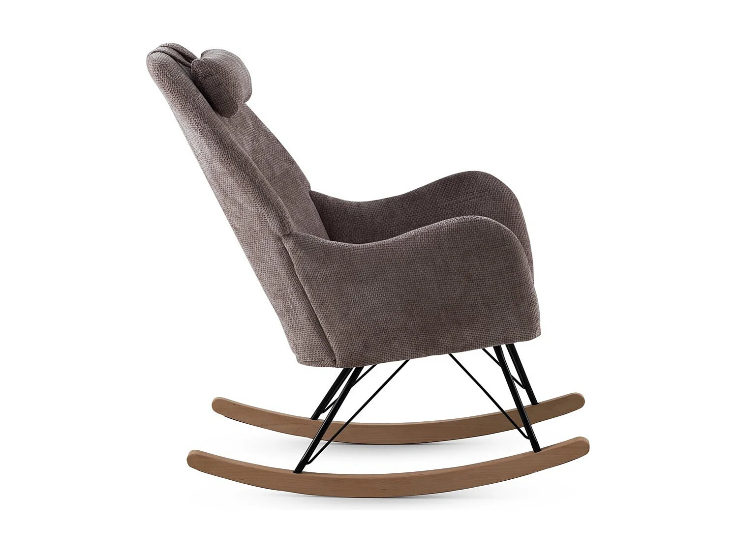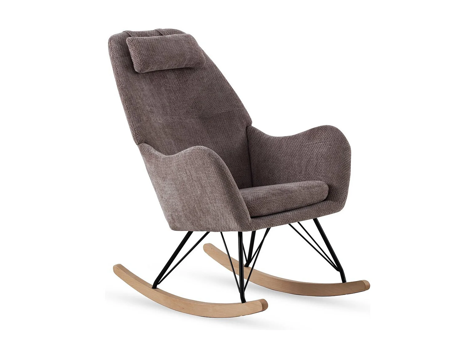 Gevulde schommelstoel in bruine chenille