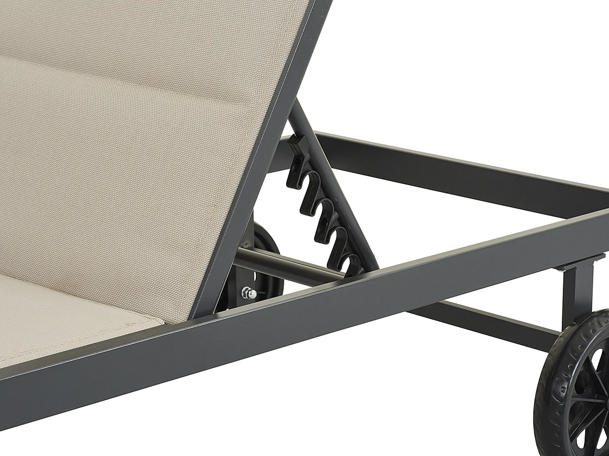 Gewatteerde Textilene Ligstoel "Bella" - Phoenix - Taupe, meervoudig verstelbare rugleuning en wielen voor optimaal comfort