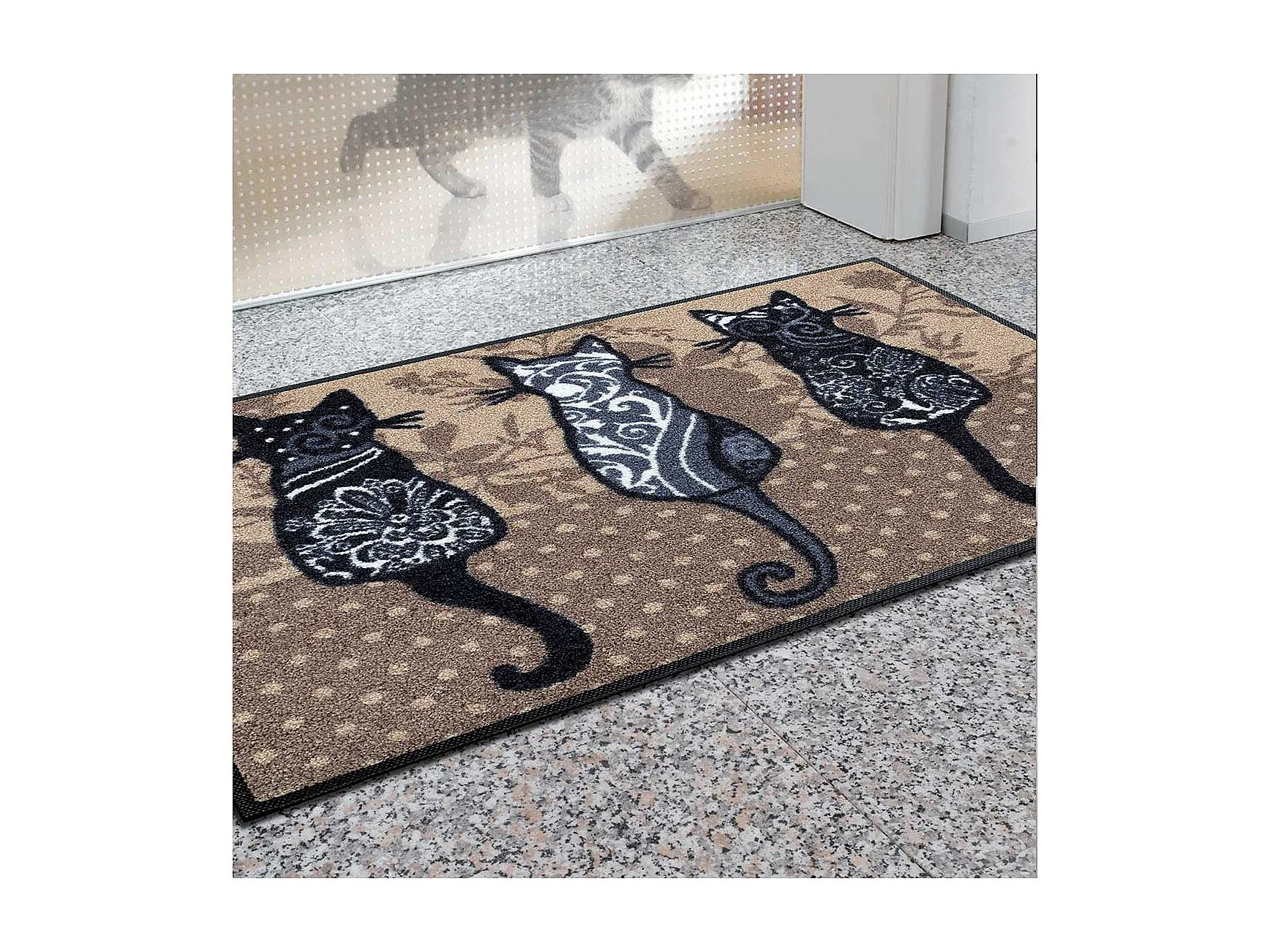 Geweven rechthoekige deurmat 50x75 cm dierenmotief bruin, anti-mijt, UV-bestendig, Oeko-Tex, polyester