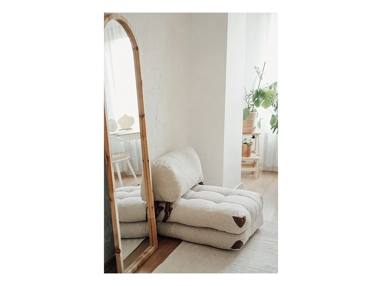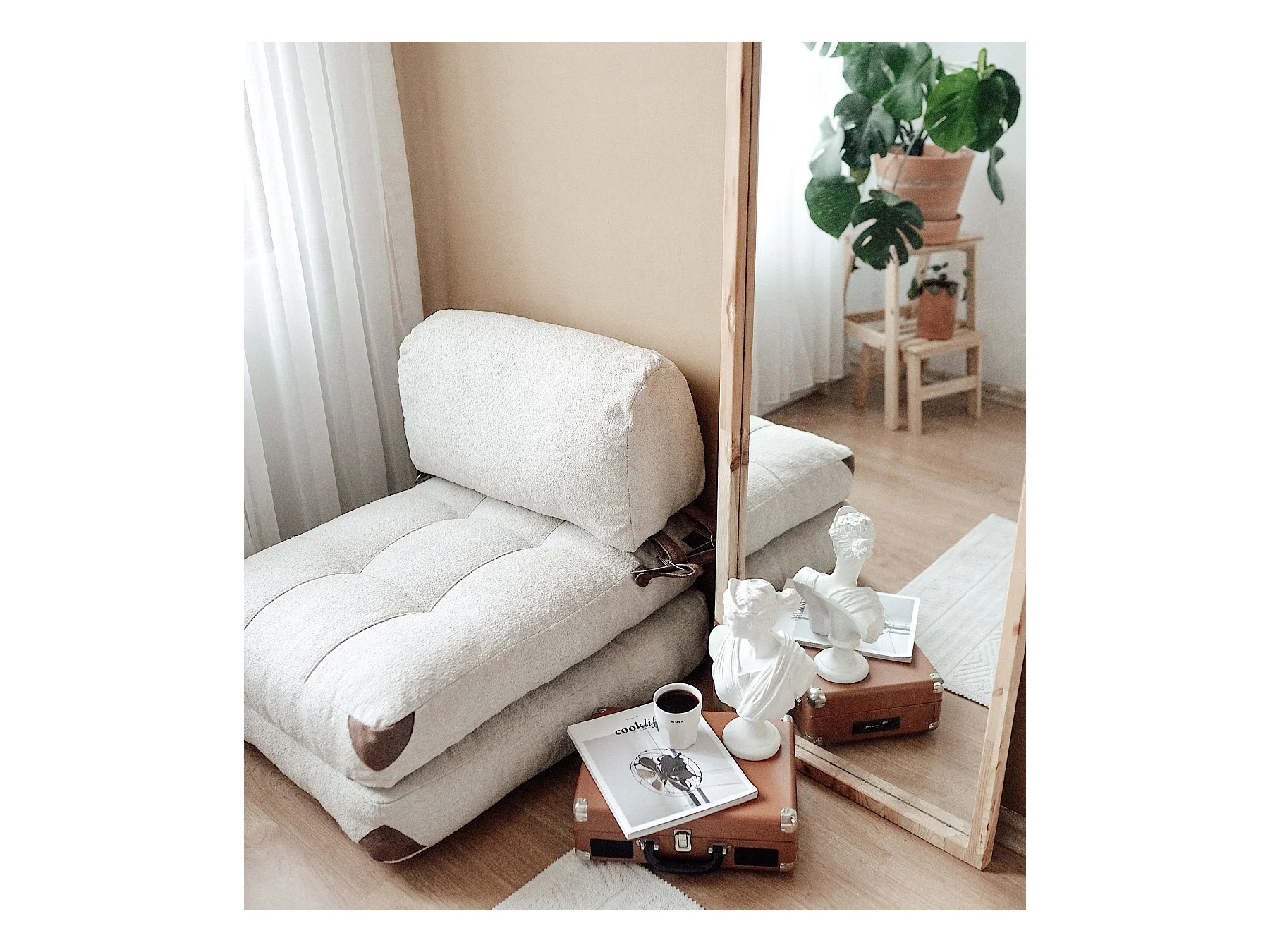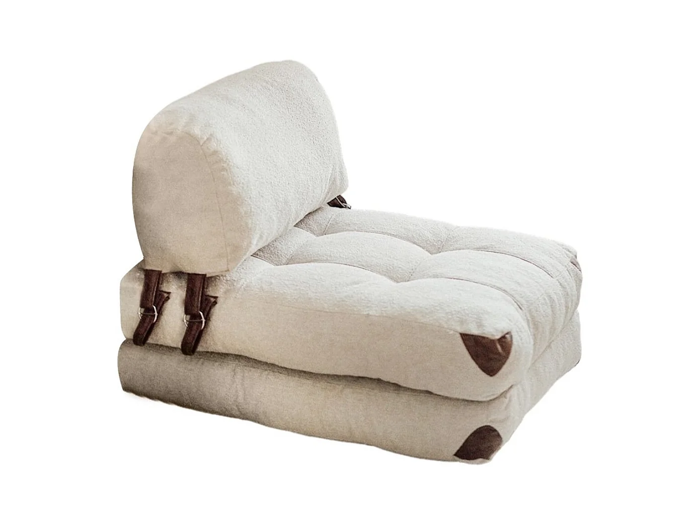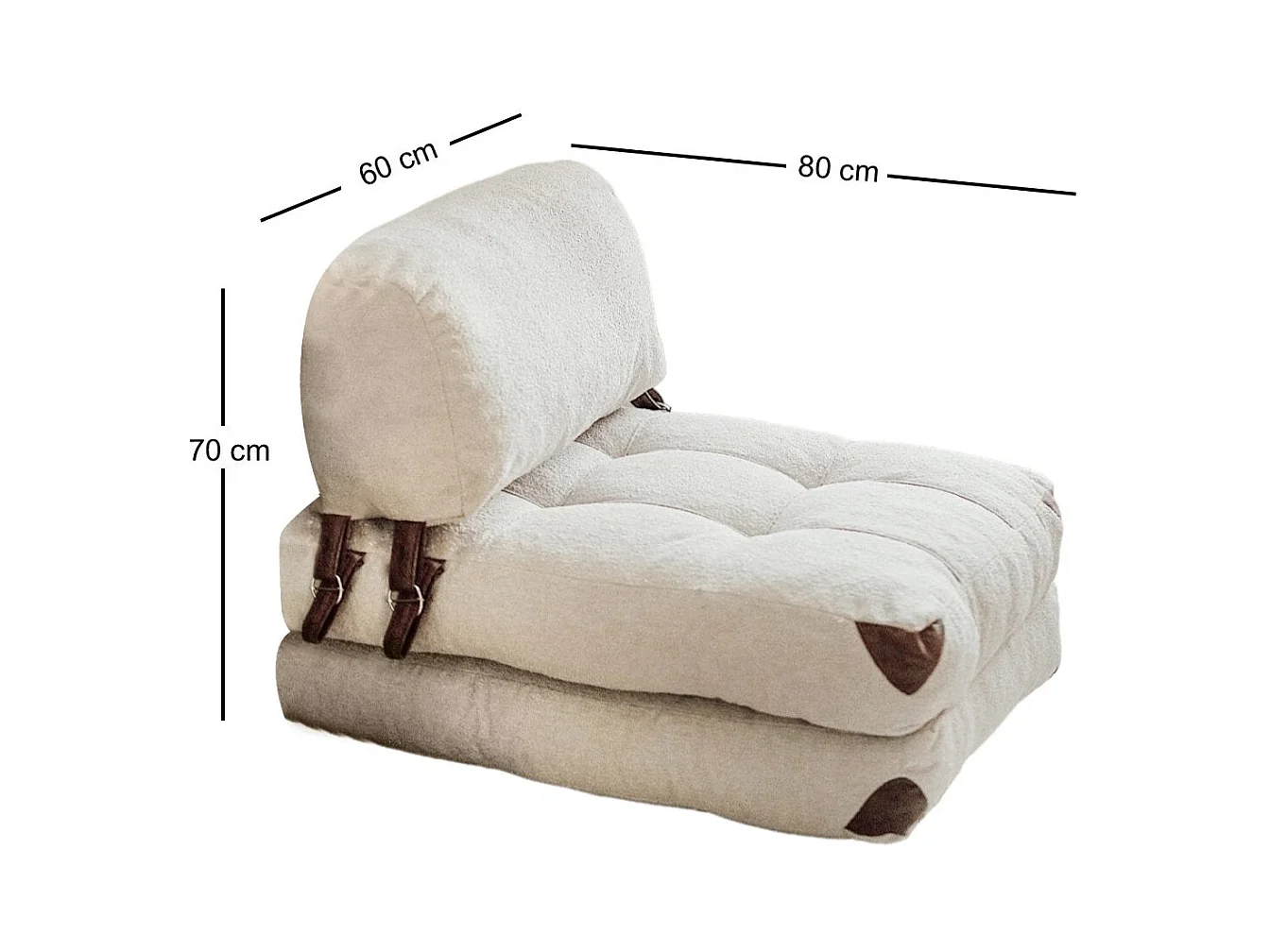 Gezellige 1-zits slaapbank, crèmekleurige Teddy stof, 80 x 70 x 60 cm | 100% polyester, comfortabele hoogte van 24 cm, om te bouwen tot een