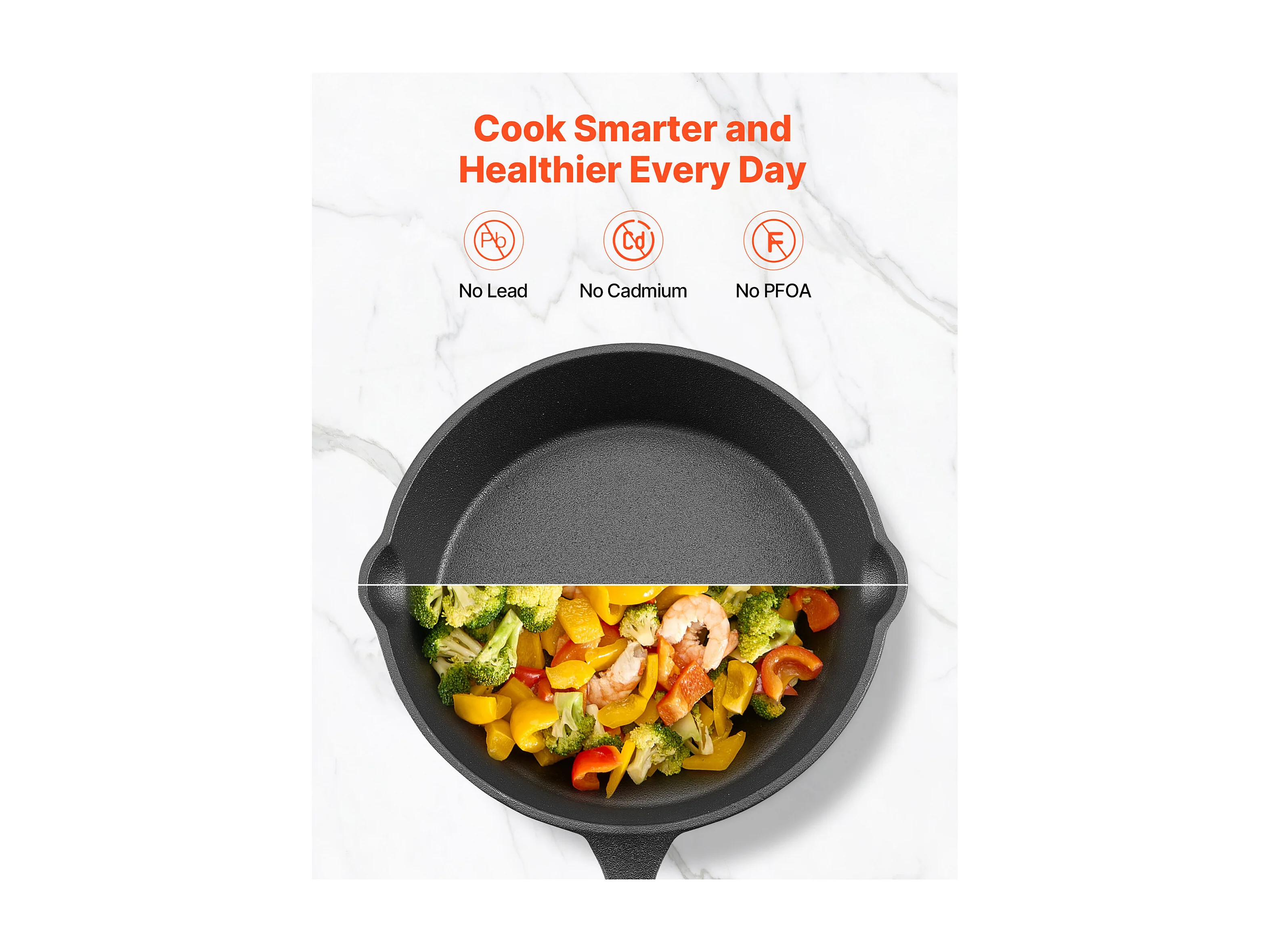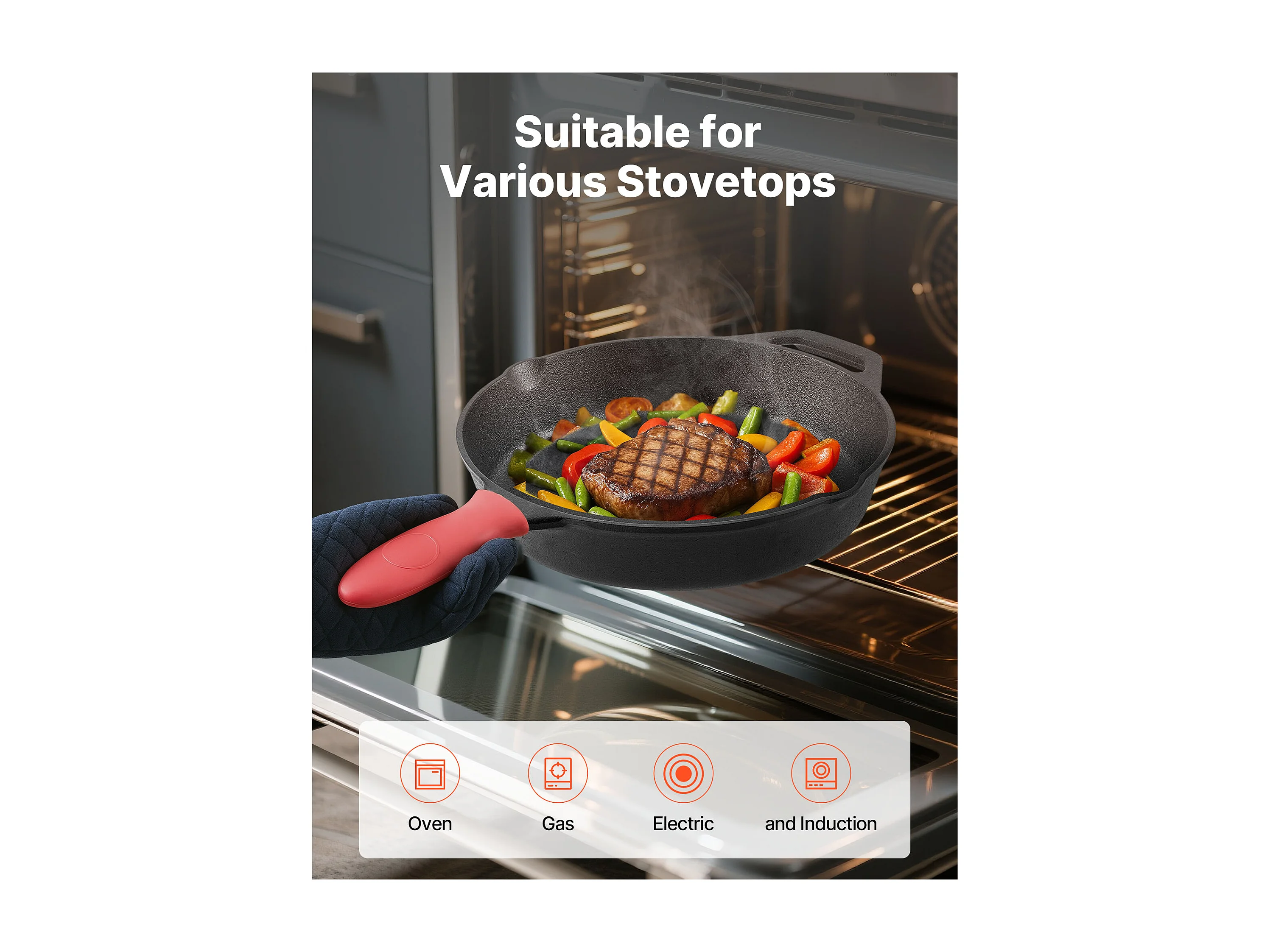 Gietijzeren Pan SucceBuy, 4 Stuks 15,5/20,5/26/30,5 Cm, Voorgebakken Sauteerpan met Hittebestendig Silicone Handvat, voor Oven, Gas, Elektrisch