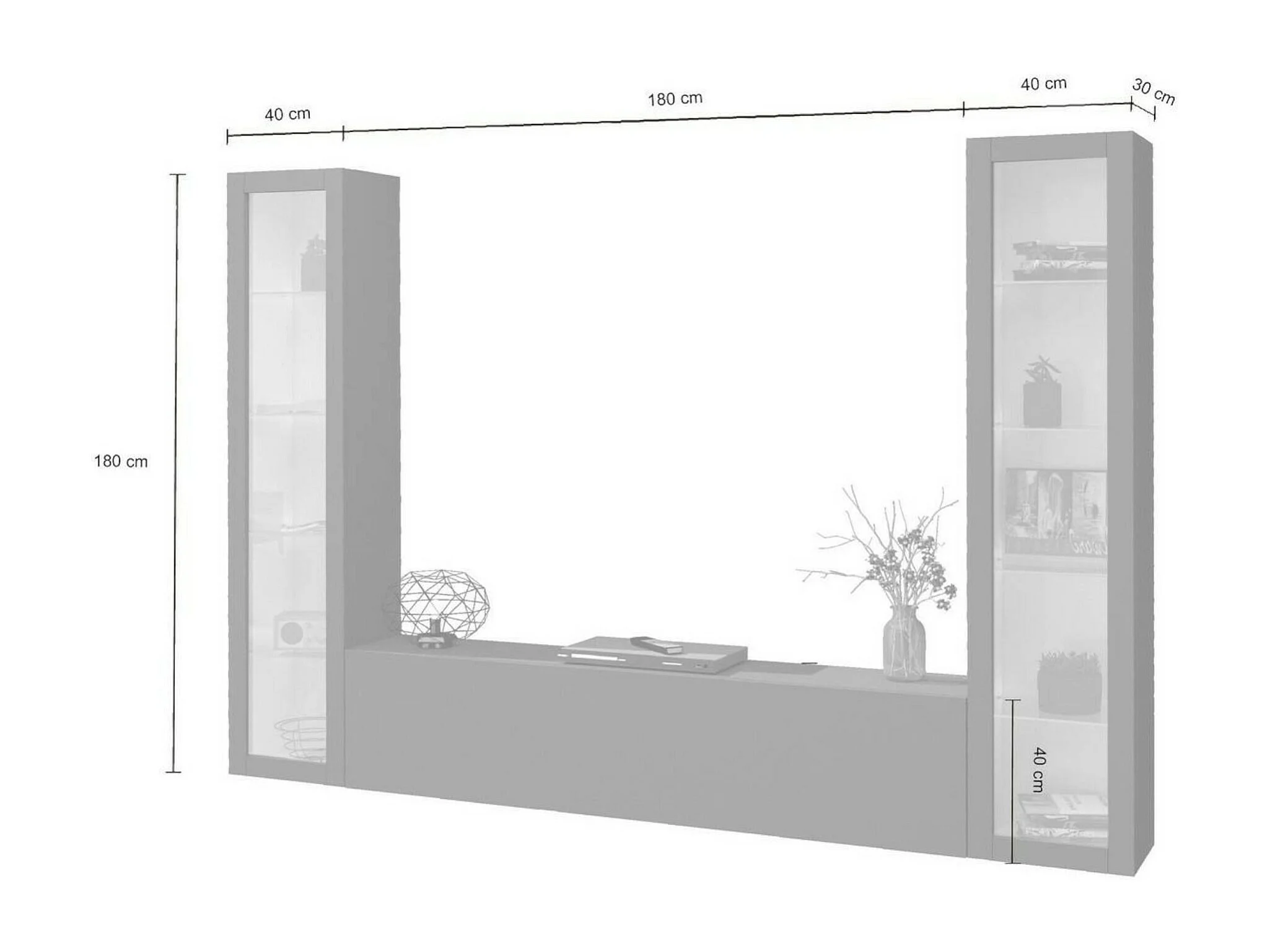 Dmora Wandmeubel Gino 30x260x180h cm Zwart Antraciet 9 Planken, Draaideur en Klapdeur, 3 Deuren Made in Italy