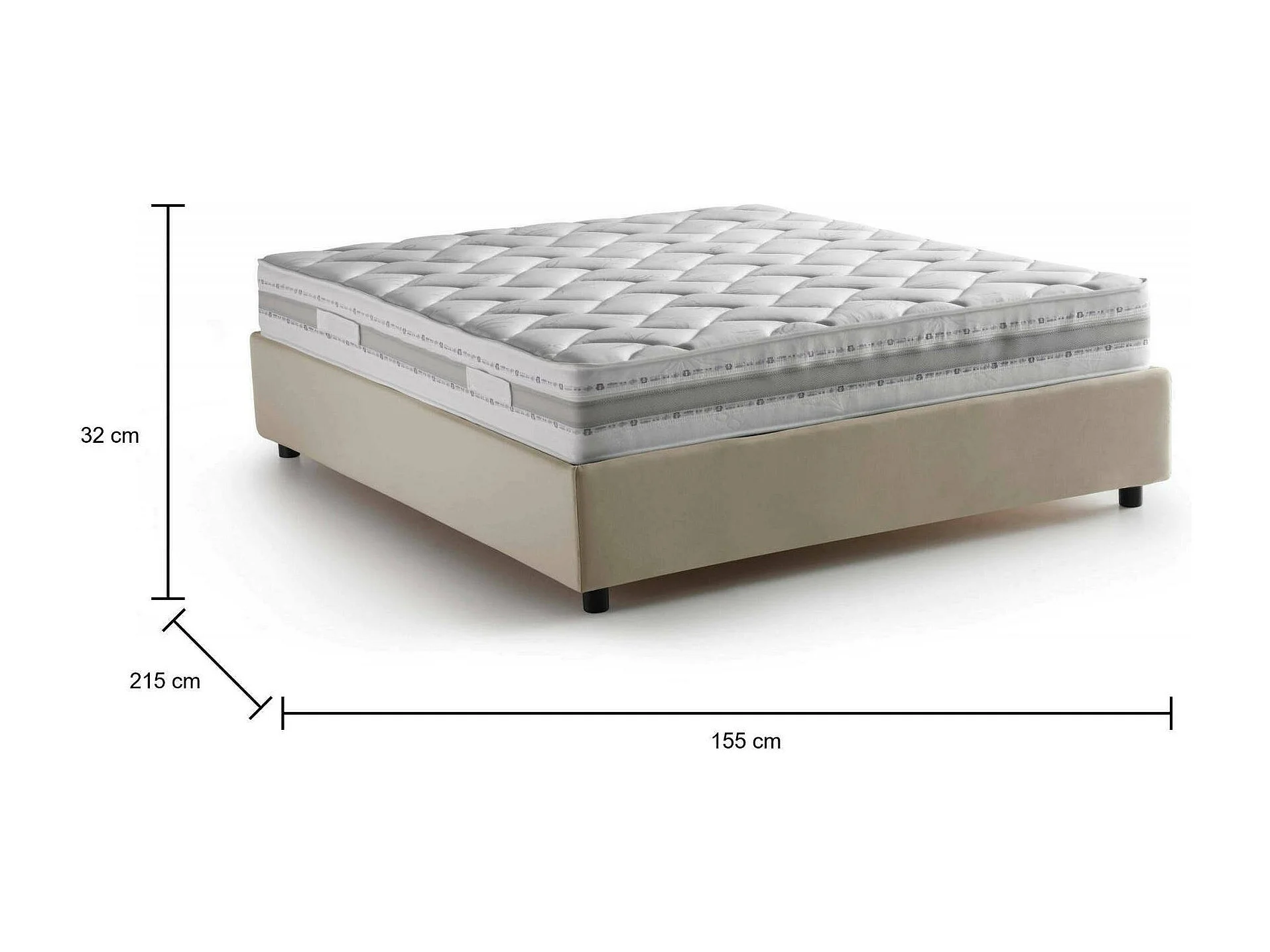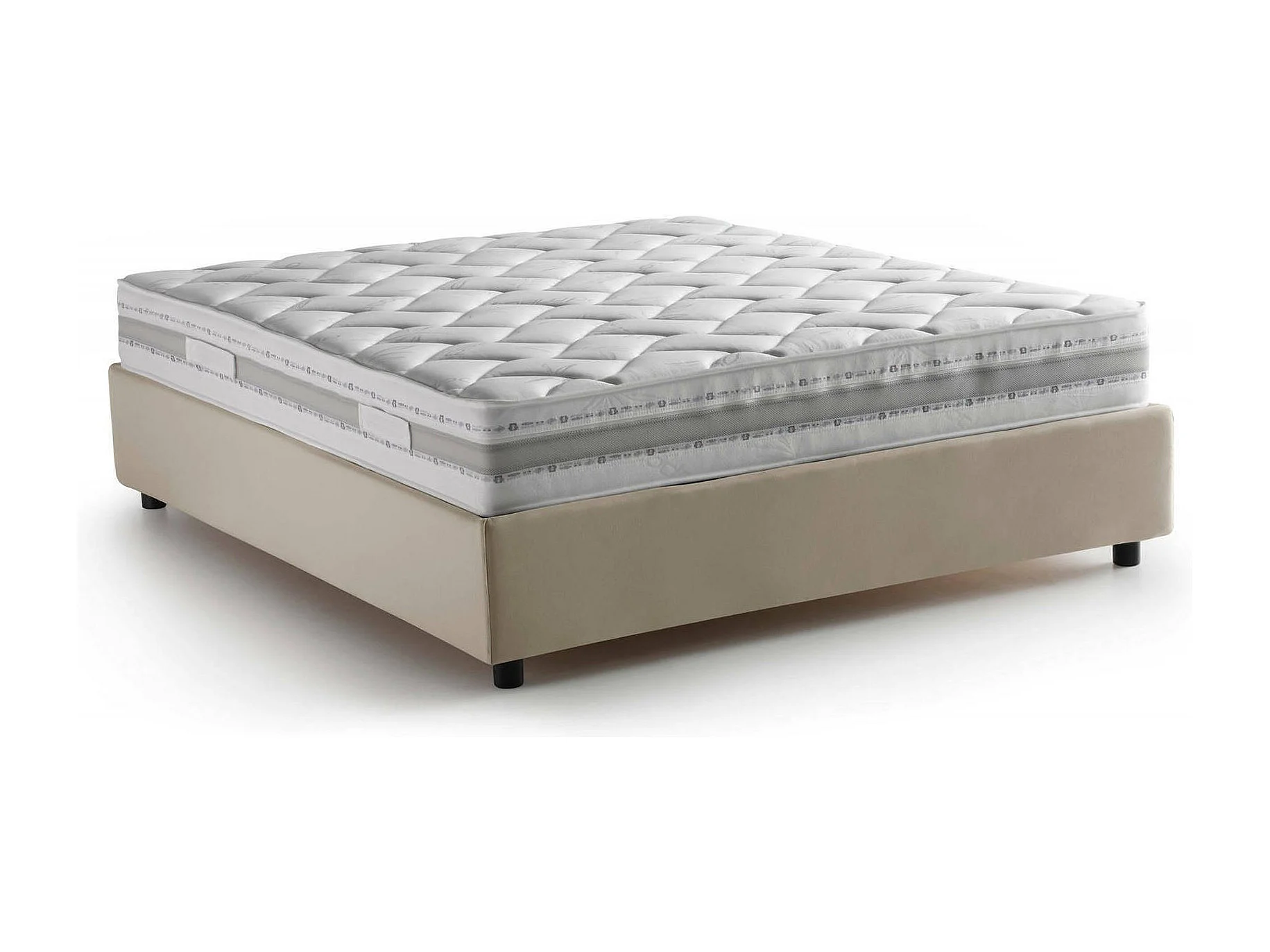 Italiaans Frans Bed "Gioia", Beige, Inclusief Matras, Afneembaar, Met Opbergruimte, Made in Italy