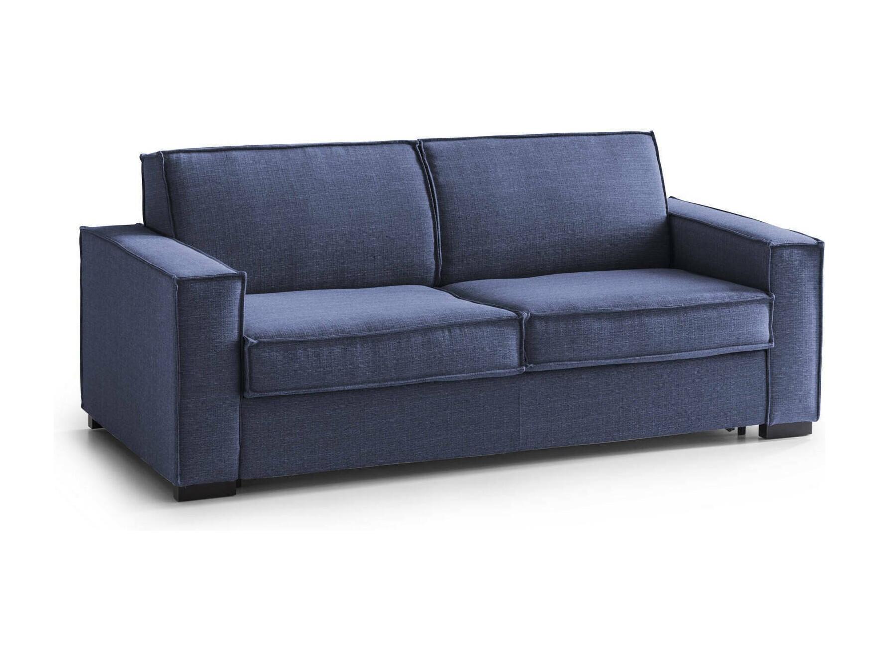 Alexis slaapbank, grote 2-zitsbank, 100% Made in Italy, woonkamerbank met draaibare opening, in gewatteerde stof, met standaard armleuningen, 200x95h90 cm, blauw