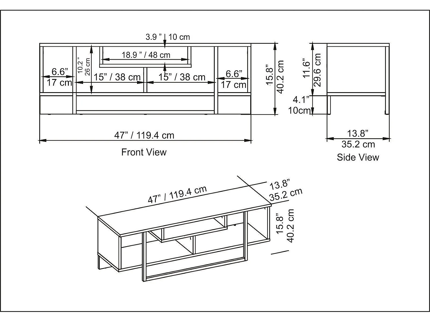 TV-standaard – 120 cm x 48,2 cm x 26,4 cm – Wit en zilver – Melamine