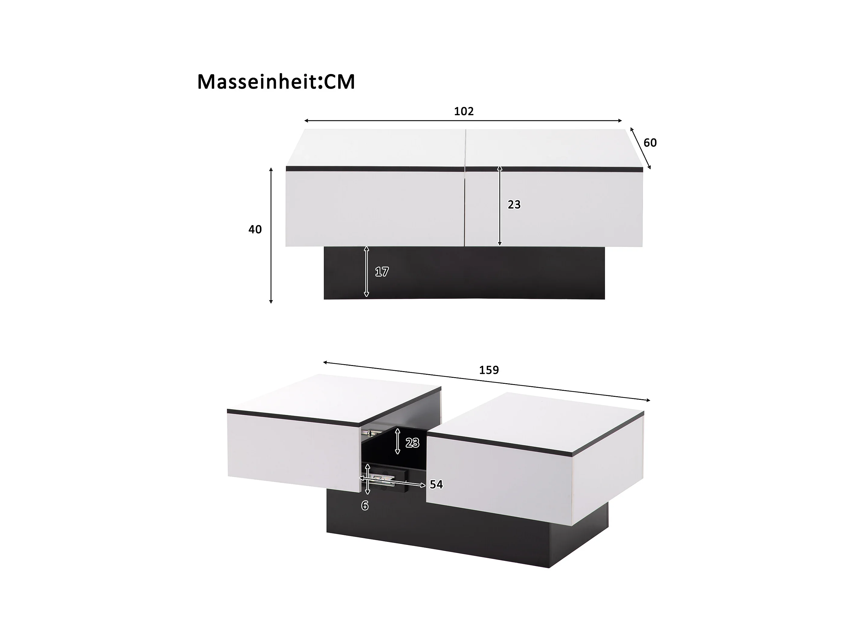 Glanzend gelakte uitschuifbare salontafel met witte opbergruimte voor binnengebruik