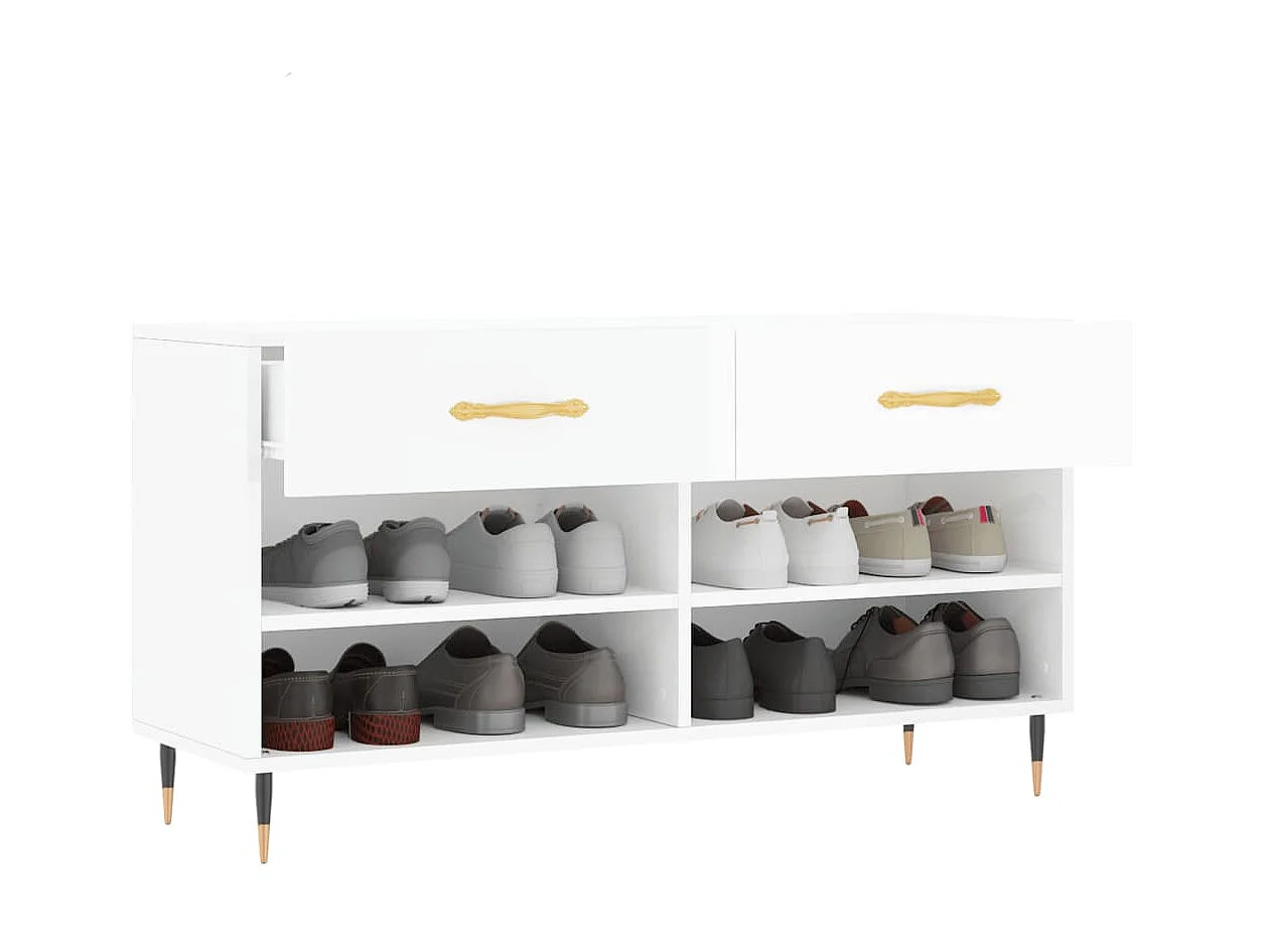 Glanzend witte schoenenbank 102x35x55 cm samengesteld hout