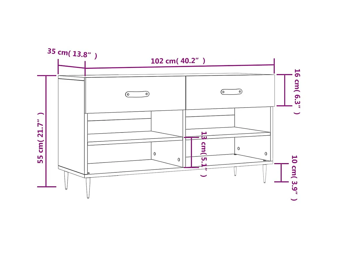 Schoenenkast Glanzend wit 102x35x55 cm Bewerkt hout