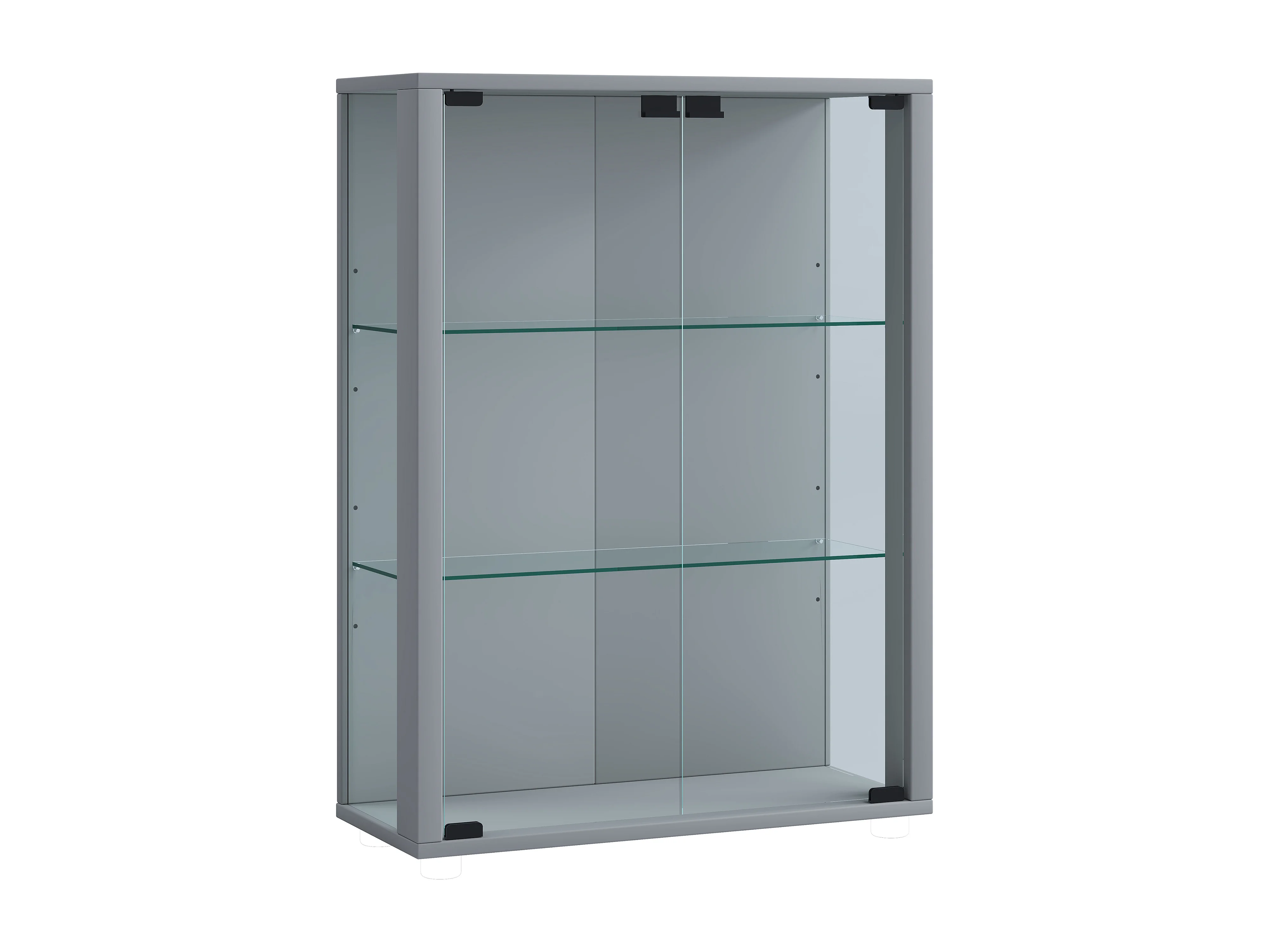 Wandvitrine met 2 deuren & 2 in hoogte verstelbare glasplanken - 80x60x25 cm - Zilverkleurig