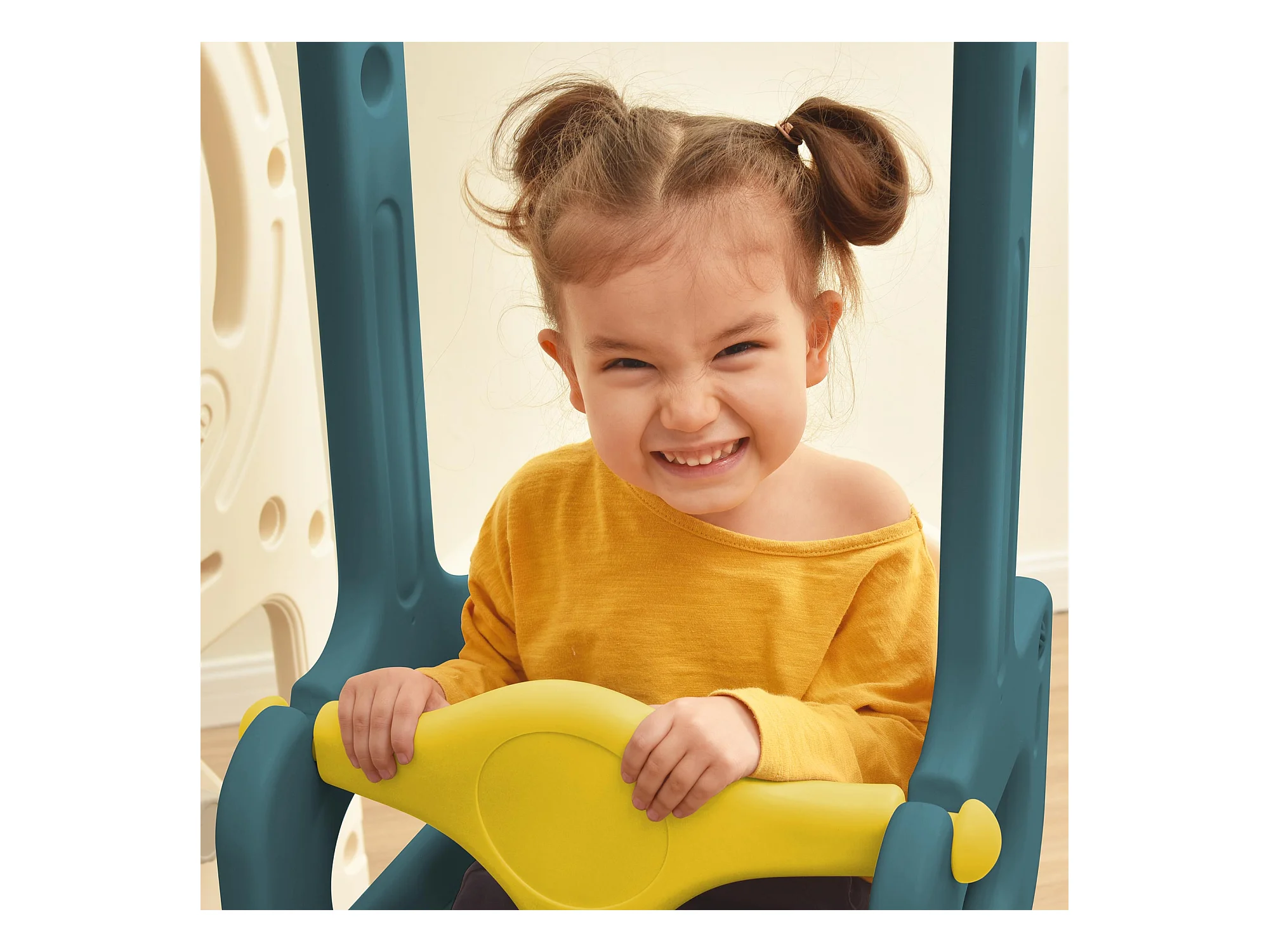Glijbaan 182x172x115cm met 5-in-1 set bus schommel ladder basketbalring en bijbehorend basketbal brengen Materiaal HDPE en groente