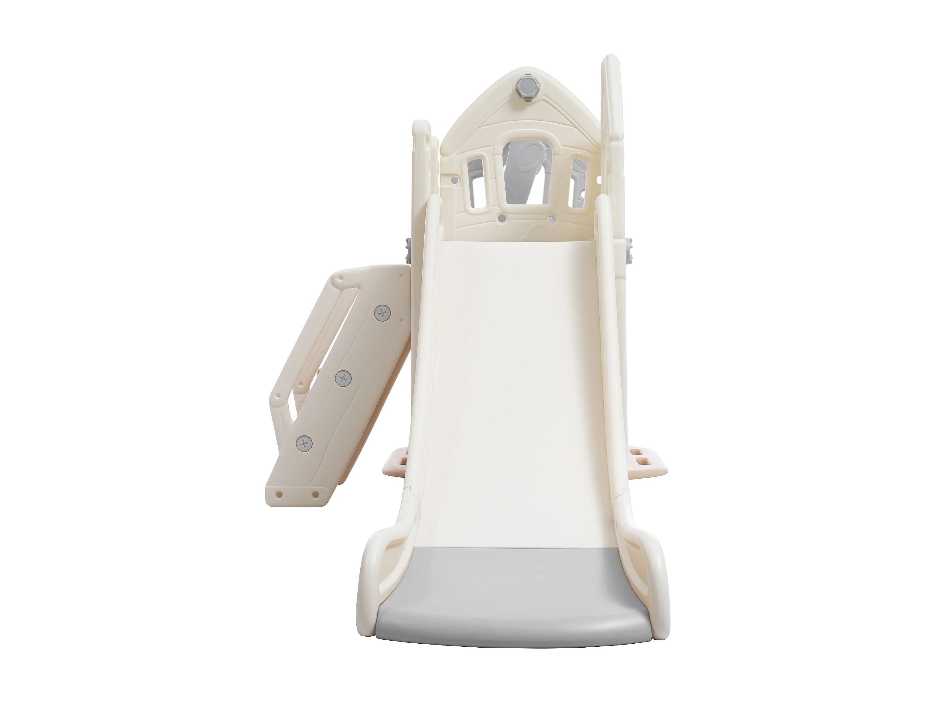 5 in 1 glijbaan - met trap, schommel, opbergruimte, basketbalring - lichtgrijs