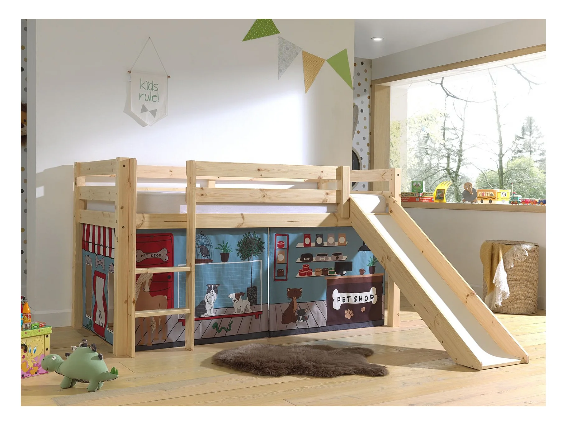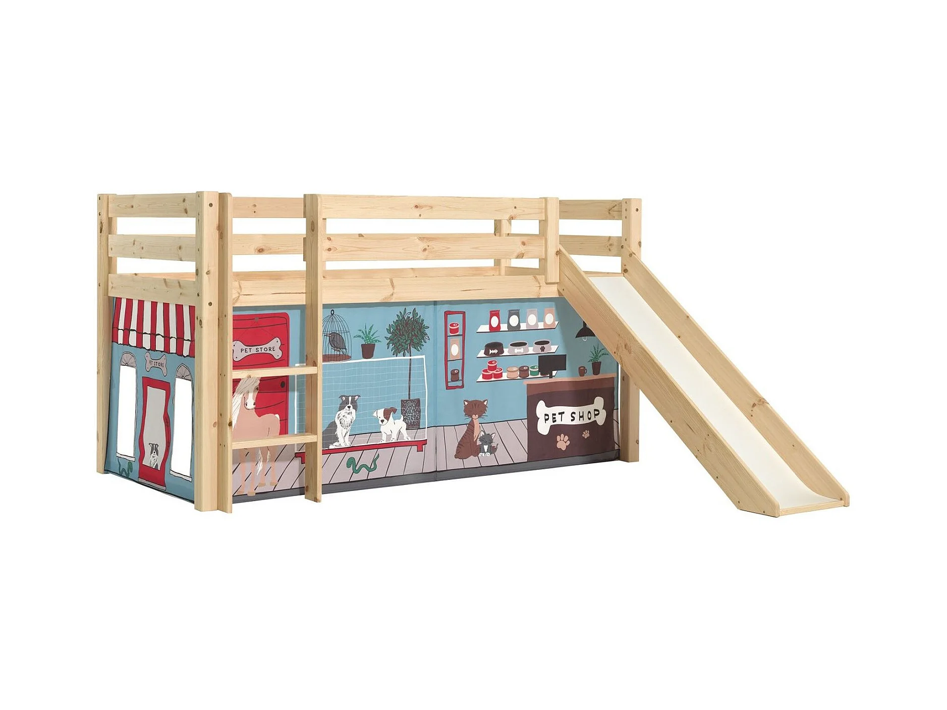 Glijbed 90x200 cm met lichte massief grenen dierentent Pino