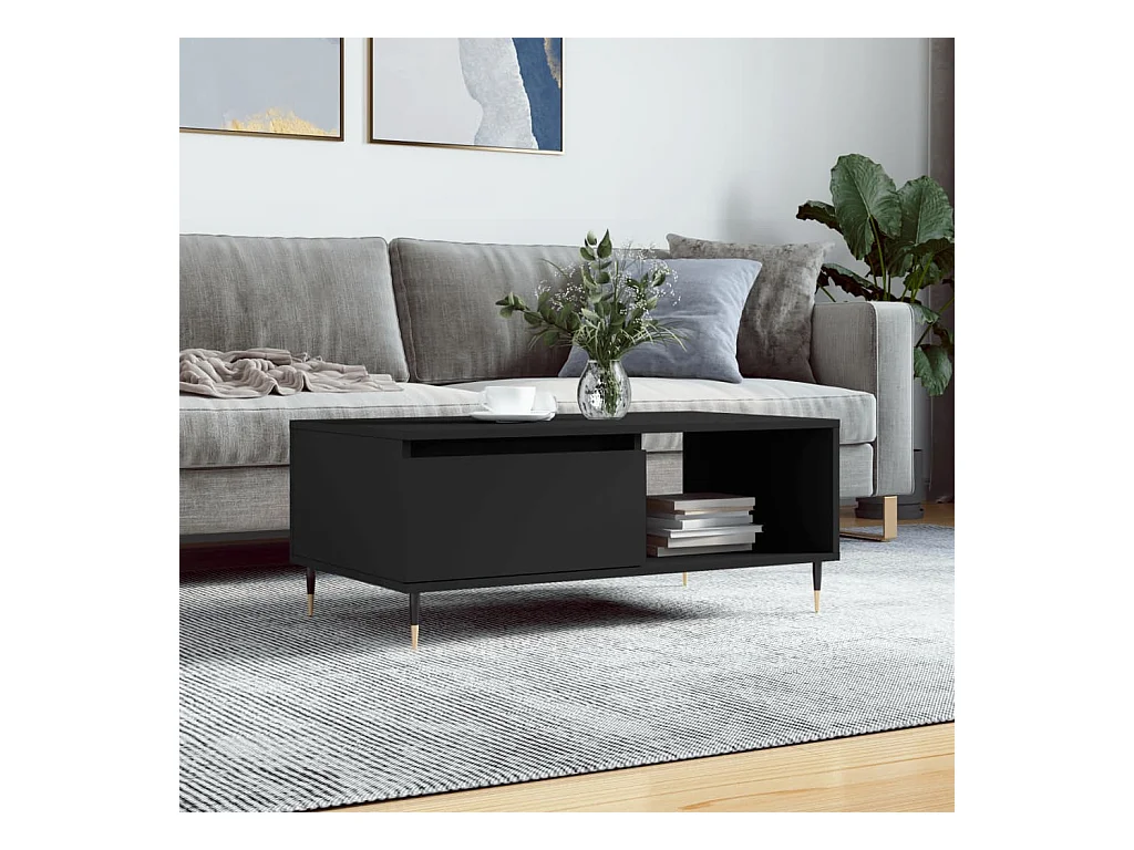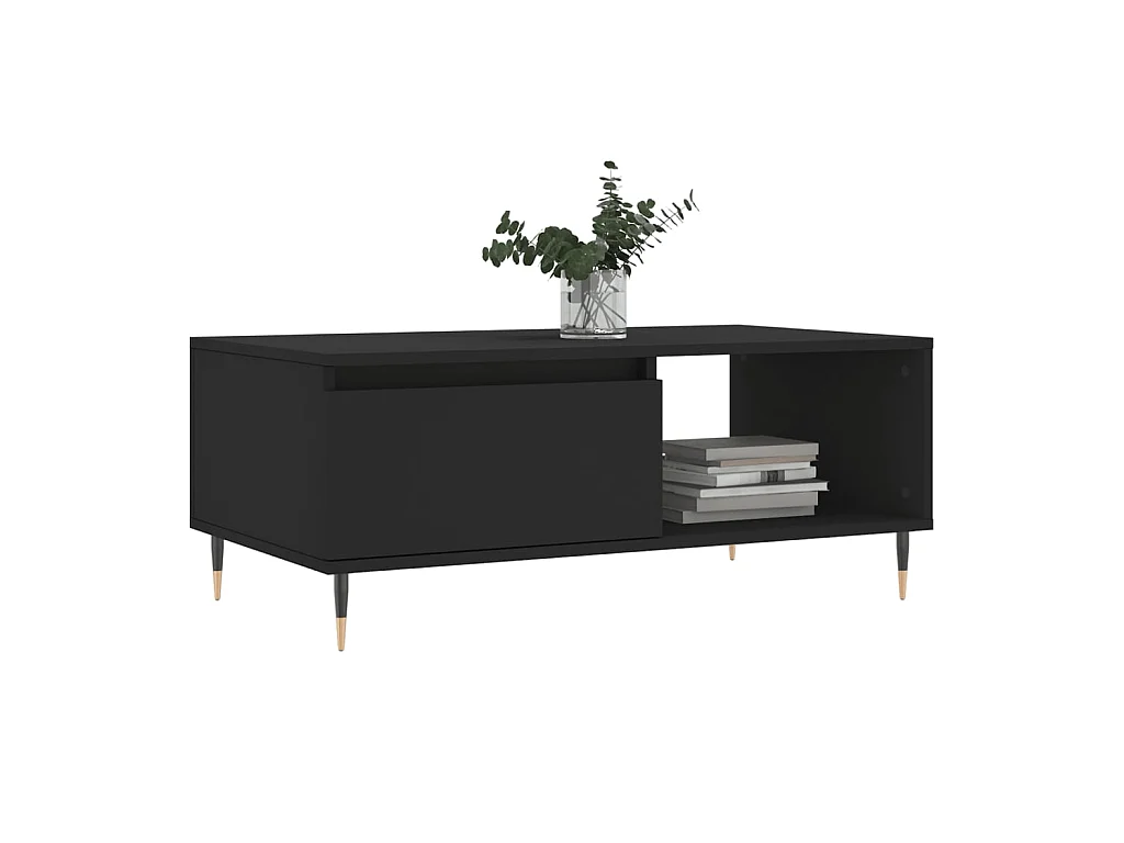 Gold Salontafel Zwart 90x50x36,5 cm Bewerkt hout