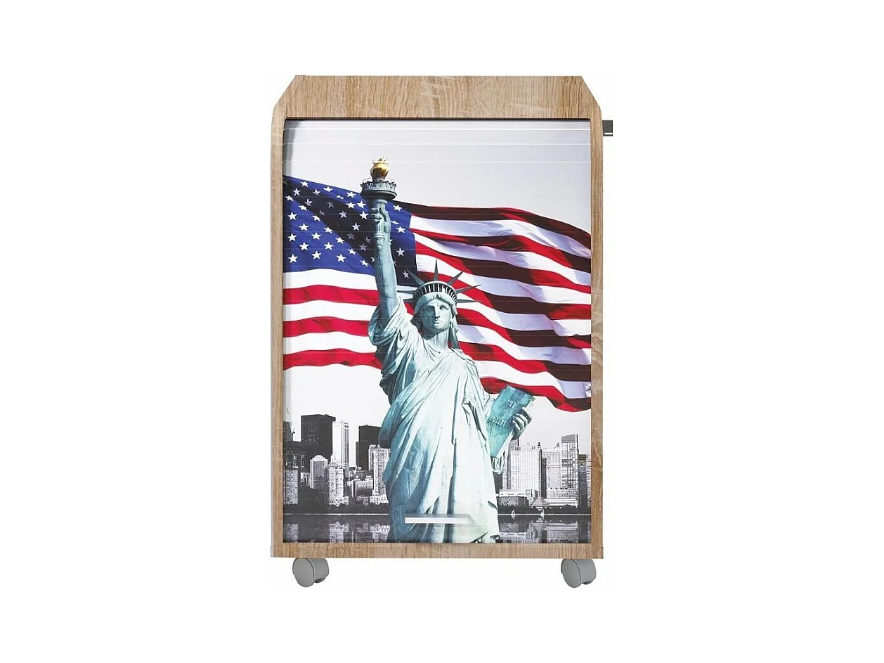 Gordijndoos op wielen 2 lichthouten lades met Vrijheidsbeeld print Orga 70 cm