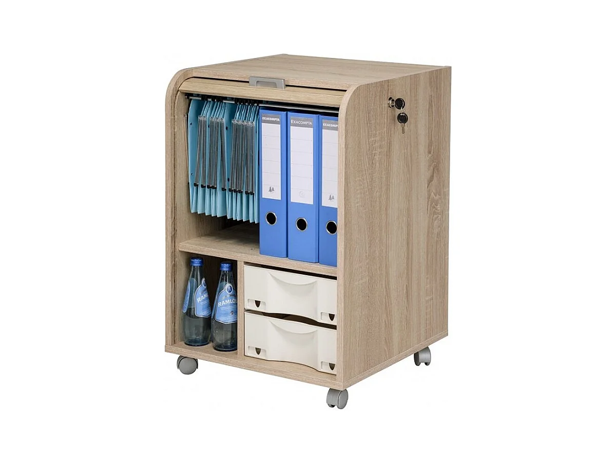 Gordijnkast op wielen 2 laden licht hout en wit Orga 70 cm