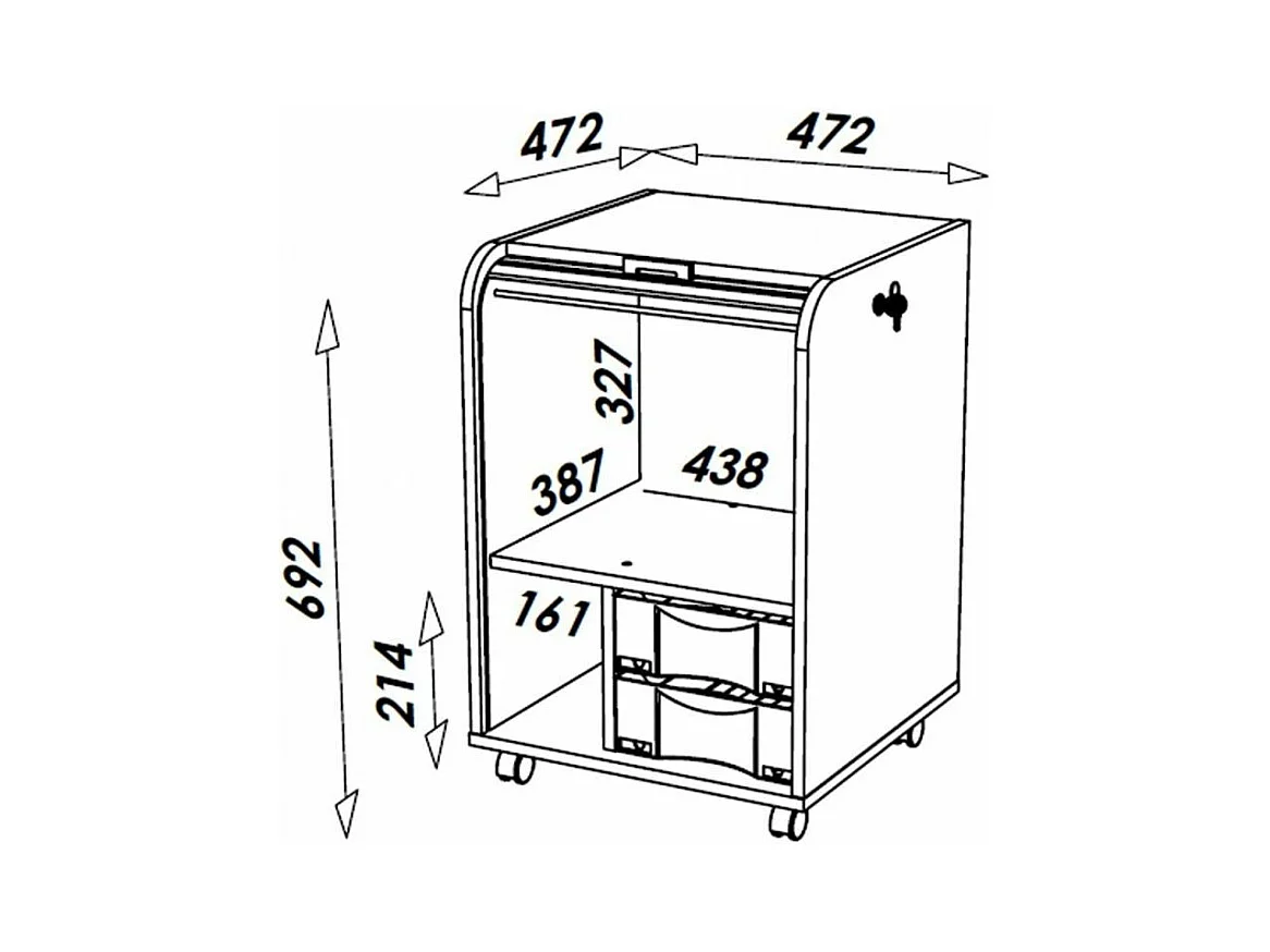 Gordijndoos op wielen 2 zwarte laden en wit gordijn Orga 70 cm