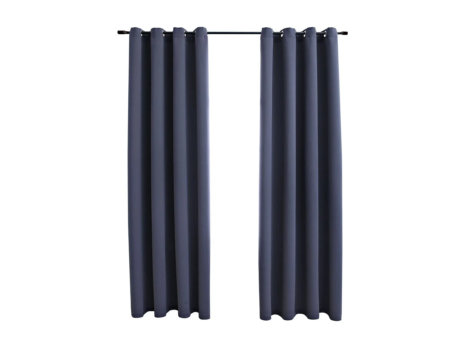 Gordijn verduisterend met metalen ringen 2 st 140x225 cm grijs NL121570