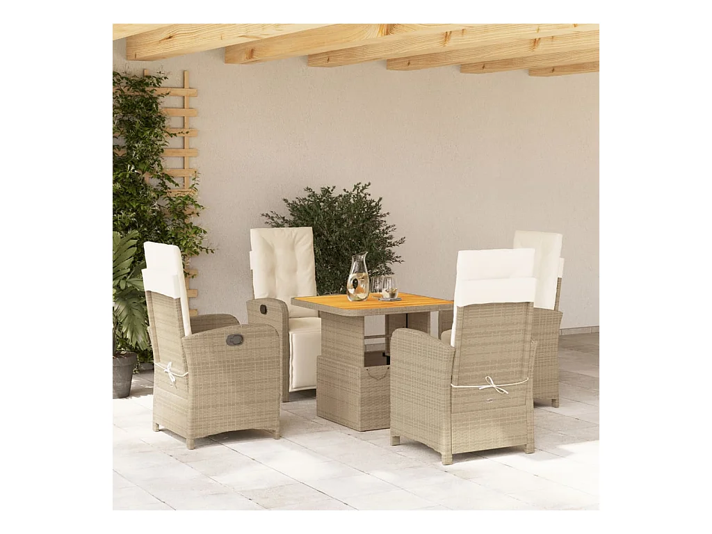 Necati 5-delige Tuinset met kussens poly rattan beige